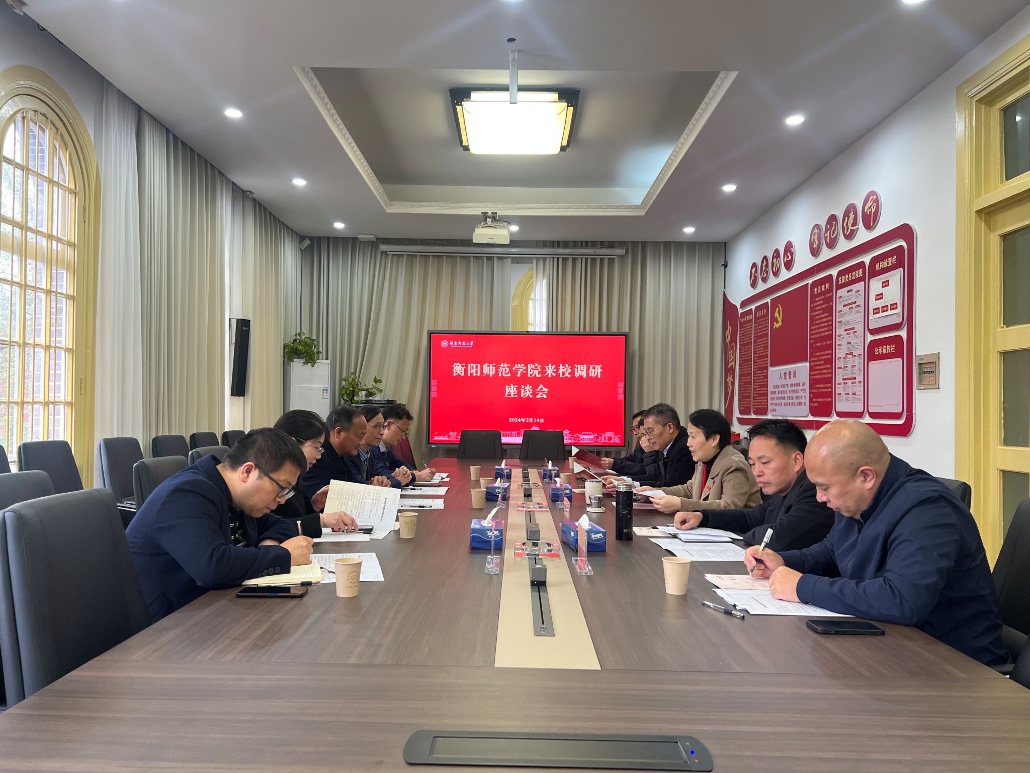 (供稿 教务处)3月14日下午,衡阳师范学院副校长聂东明一行来校调研交流本科人才培养工作,座谈会在教务处201会议室举行。我校副校长谢资清出席座谈会,会议由评建办常务副主任秦建新主持。
