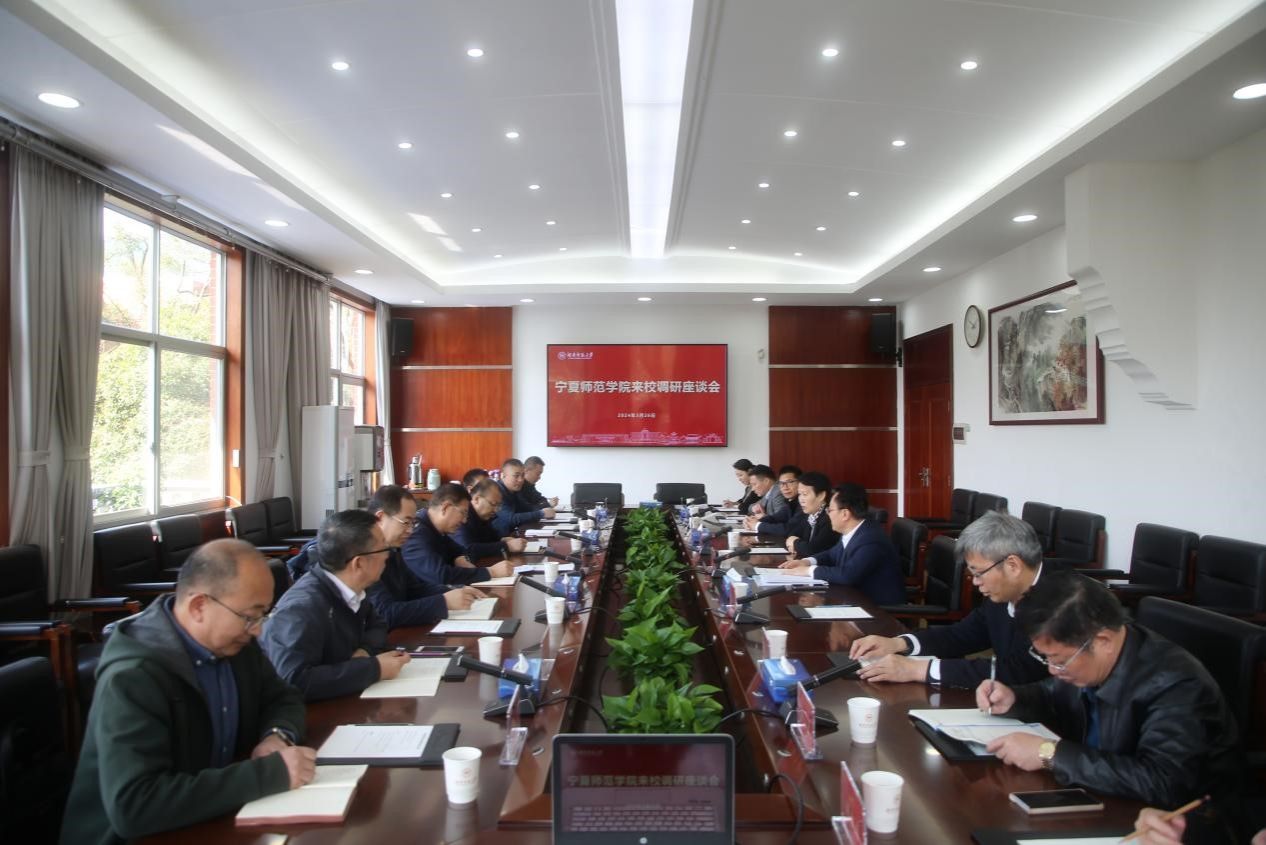 (记者 马铁泉 刘慧琳)3月26日上午,宁夏师范学院校长王宏伟、宁夏师范学院副校长田富军一行来校调研交流,座谈会在校办公楼二会议室举行。中共第二十届中央候补委员、中国工程院院士、校长刘仲华出席座谈会,会议由副校长谢资清主持。
