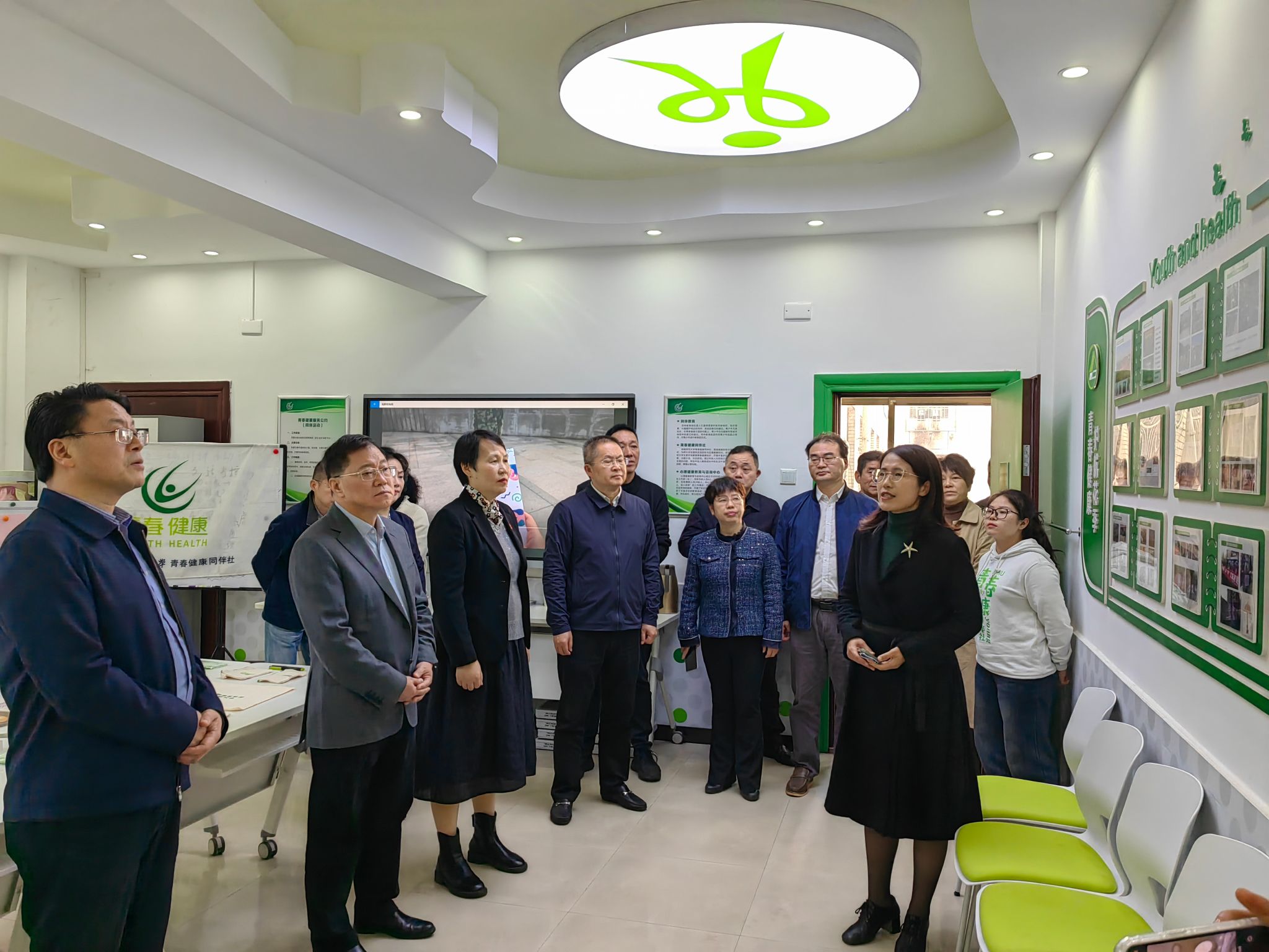 座谈会前,陈文浩一行到学校计生办青春健康同伴社实地参观。