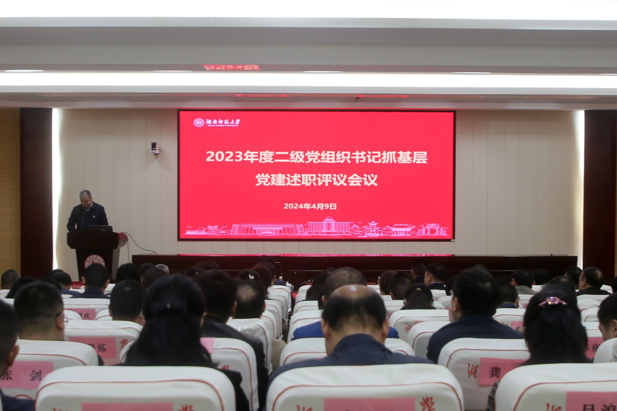 (记者 马铁泉 黄依依 朴佳琪)4月9日上午,我校在中和楼中和讲堂召开2023年度二级党组织书记抓基层党建述职评议大会。校党委书记、欧洲科学院院士蒋洪新,校长、中共第二十届中央候补委员、中国工程院院士刘仲华等全体在家校领导及党委委员出席会议。会议由校党委副书记周俊武主持。