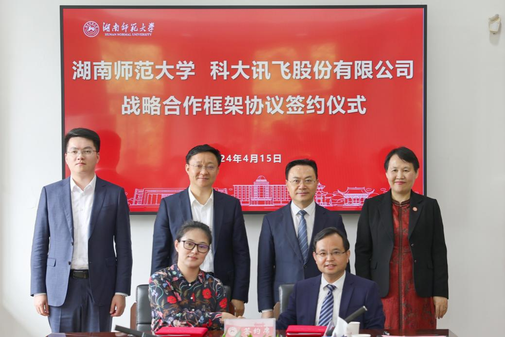 (供稿 发展规划与学科建设处 摄影 马铁泉)4月15日,我校与科大讯飞股份有限公司(以下简称“科大讯飞”)签署战略合作框架协议。科大讯飞股份有限公司董事长刘庆峰,副总裁、湖南公司总经理杨光丽,我校校长、中共第二十届中央候补委员、中国工程院院士刘仲华,副校长潘安练出席签约仪式。副校长谢资清主持签约仪式。
