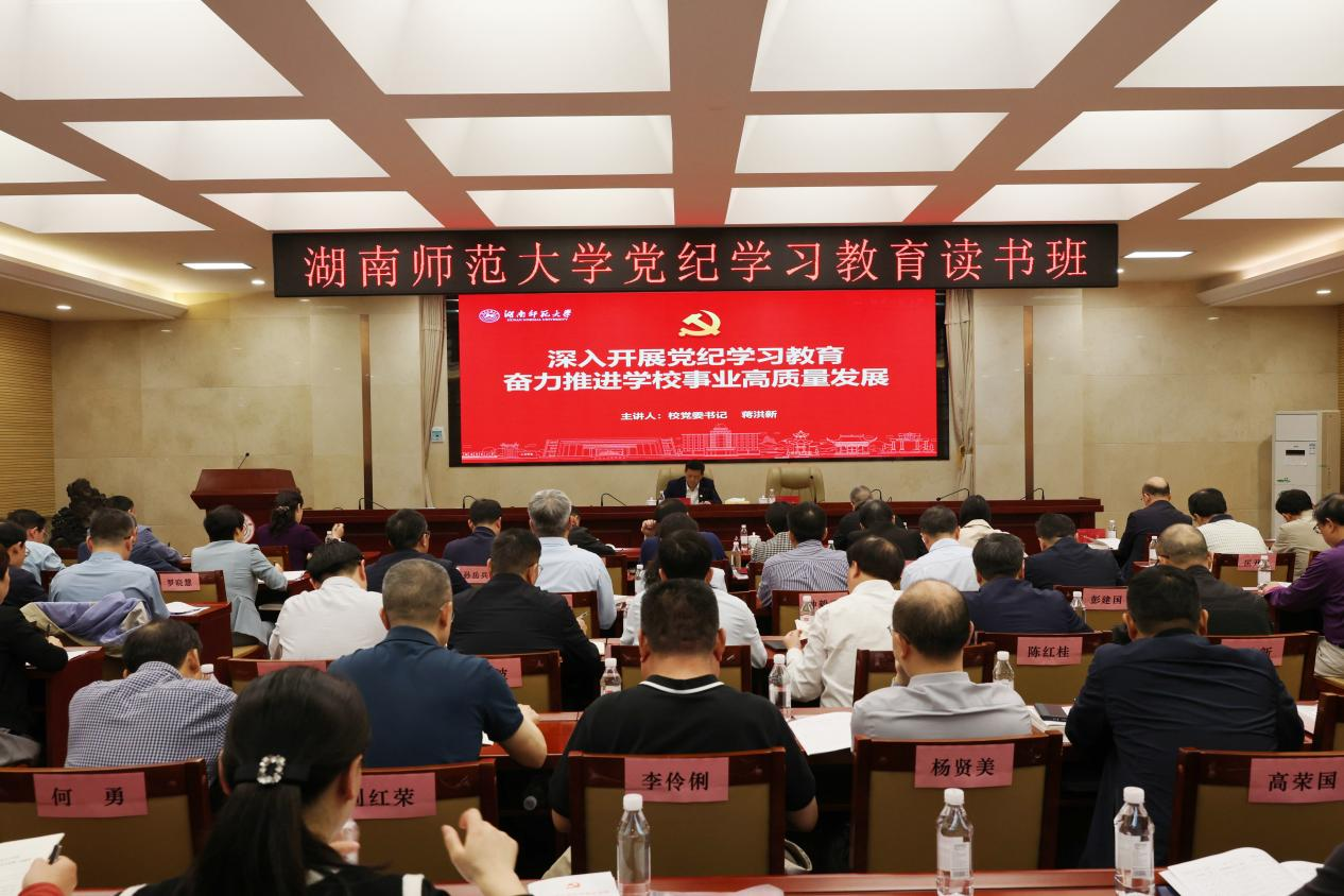 蒋洪新指出,举办党纪学习教育读书班是贯彻落实中央决策部署和省委工作要求的重要举措,也是推动我校党纪学习教育走深走实的重要内容。我校要把开展党纪学习教育作为当前一个时期重要政治任务,以高度的政治责任感推动学习教育取得实效。他就圆满完成好本次读书班各项学习任务强调了几点意见:一是要准确把握纪律建设与事业发展的辩证关系。必须牢牢树立党纪意识,同时紧紧围绕发展这个第一要务,真正做到两手抓、两不误、两促进。二是要深入开展党纪学习教育。坚持打牢学纪这个基础,重点突出知纪这个前提,不断强化明纪这个关键,始终把牢守纪这个根本,不断强化纪律意识、加强自我约束、提高免疫能力,始终做到忠诚干净担当。三是要奋力推进学校事业高质量发展。不断强化党建引领,涵养高尚师德师风,提升办学治校水平。以党纪学习教育为契机,不断提升学校治理体系和治理能力现代化水平,切实助力实现我校各项事业高质量发展。