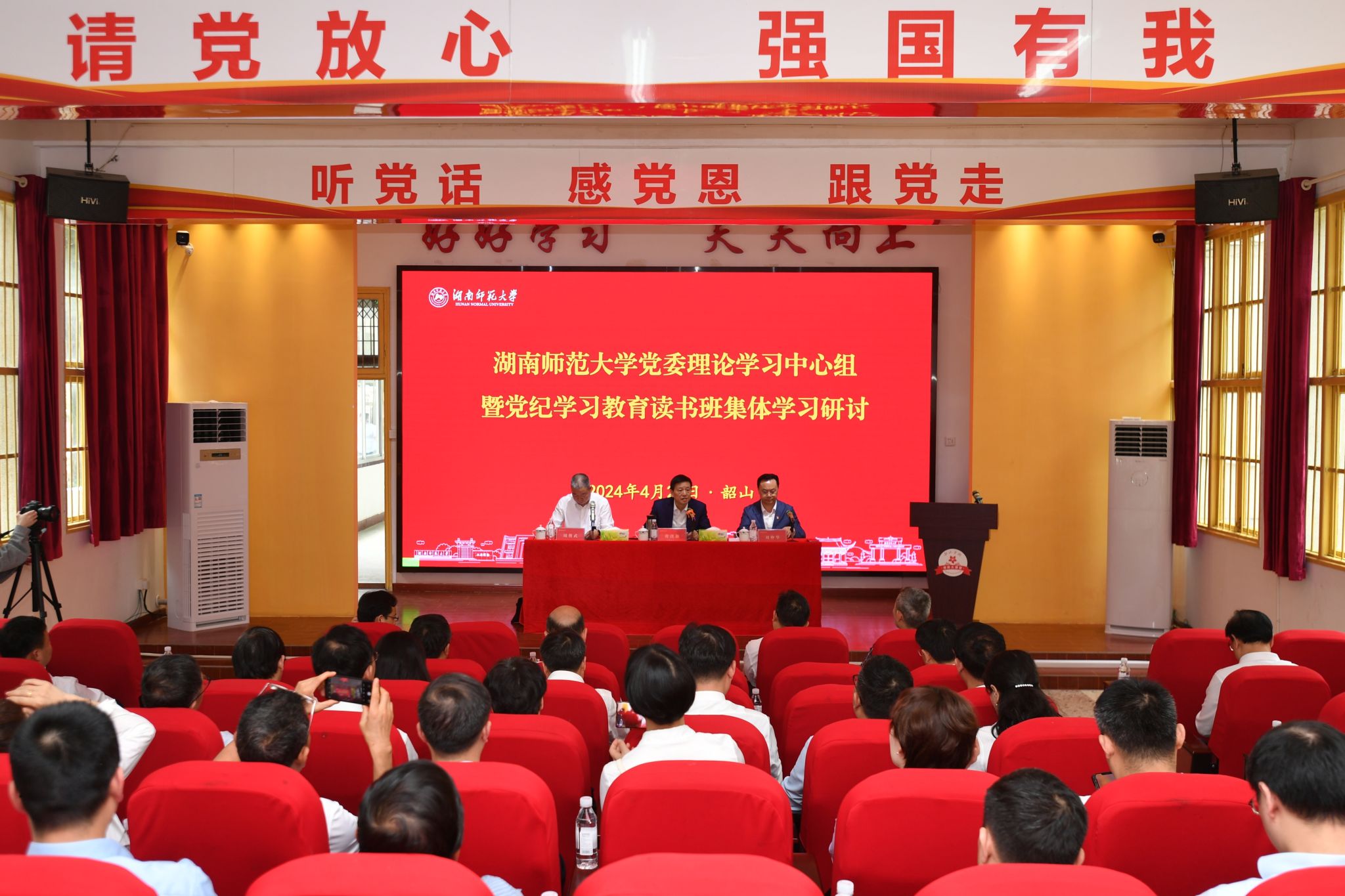 蒋洪新在主持讲话时表示,此次来到伟人故里、主席家乡学习,瞻仰铜像、重温誓词,参观故居、聆听党课,深受教育且很有意义。他强调,开展好党纪学习教育,要进一步抓好理论学习,坚持以习近平新时代中国特色社会主义思想为指导,原原本本、逐章逐条、联系实际学《条例》,切实增强纪律意识,提高党性修养;要进一步强化作风建设,坚持学高为师、身正为范,用铁的纪律抓班子、带队伍、促团结,通过加强作风建设,不断深化全面从严治党;要进一步推进事业发展,凝心聚力,把党纪学习教育成果转化为发展动力,不断提振干事创业的精气神,奋力推动学校事业高质量发展。