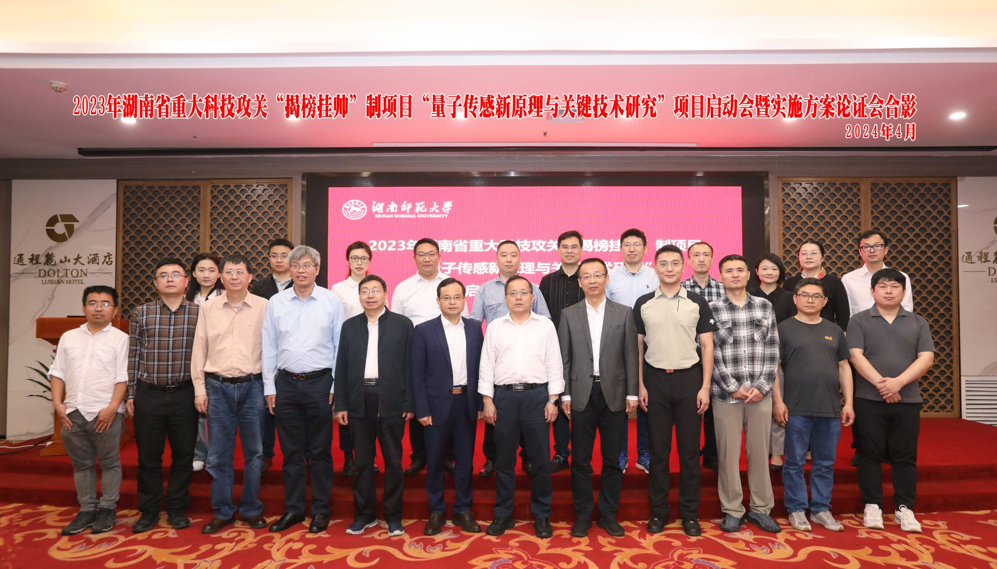 (供稿 彭美瑜)4月16日, 2023年湖南省重大科技攻关“揭榜挂帅”制项目“量子传感新原理与关键技术研究”项目启动会暨实施方案论证会在长沙召开。我校副校长潘安练出席会议,会议由我校科技处处长唐东升主持。