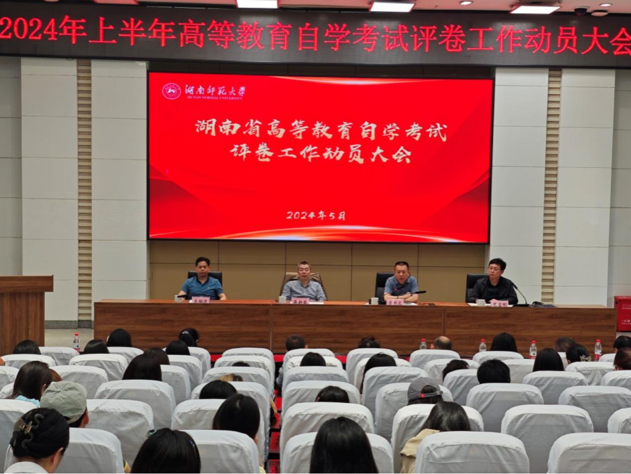 (供稿 继续教育学院)5月7日上午,2024年上半年湖南省高等教育自学考试评卷工作动员大会在我校至善讲堂召开。省教育考试院副院长康洪文、我校副校长蒋新苗出席会议。会议由继续教育学院副院长陈宝刚主持。