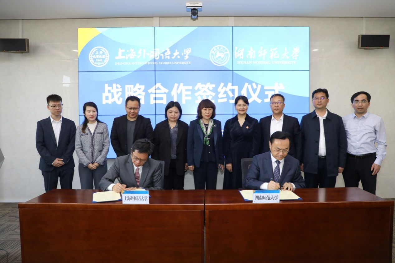 上海外国语大学校长办公室、发展规划与综合改革处、英语学院,我校校长办公室、发展规划与学科建设处、外国语学院、体育学院负责同志出席签约仪式。