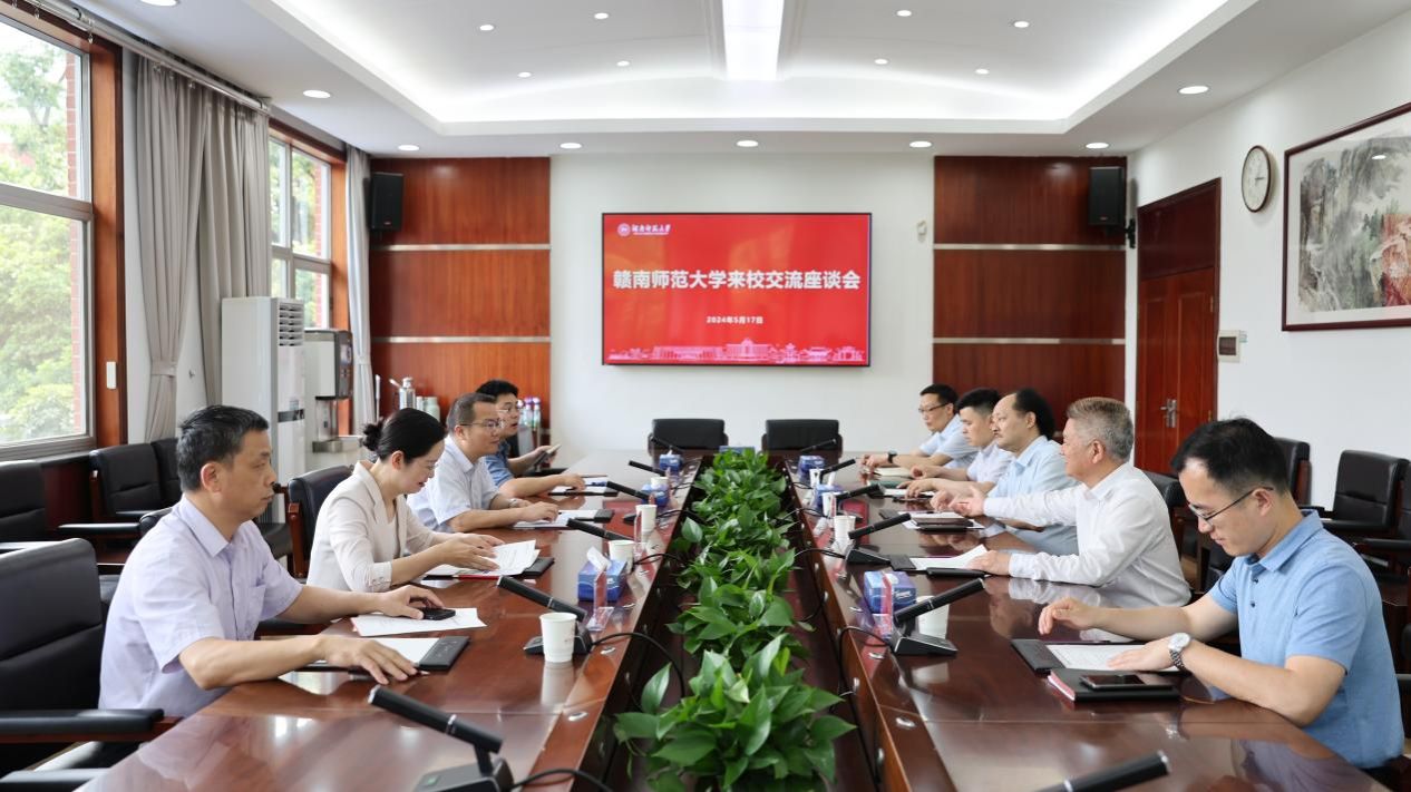 (记者 李慈添 宋晨)5月17日下午,赣南师范大学副校长甘雅芬、肖笃森一行来我校调研交流,座谈会在校办公楼二会议室举行。会议由副校长唐贤清主持。