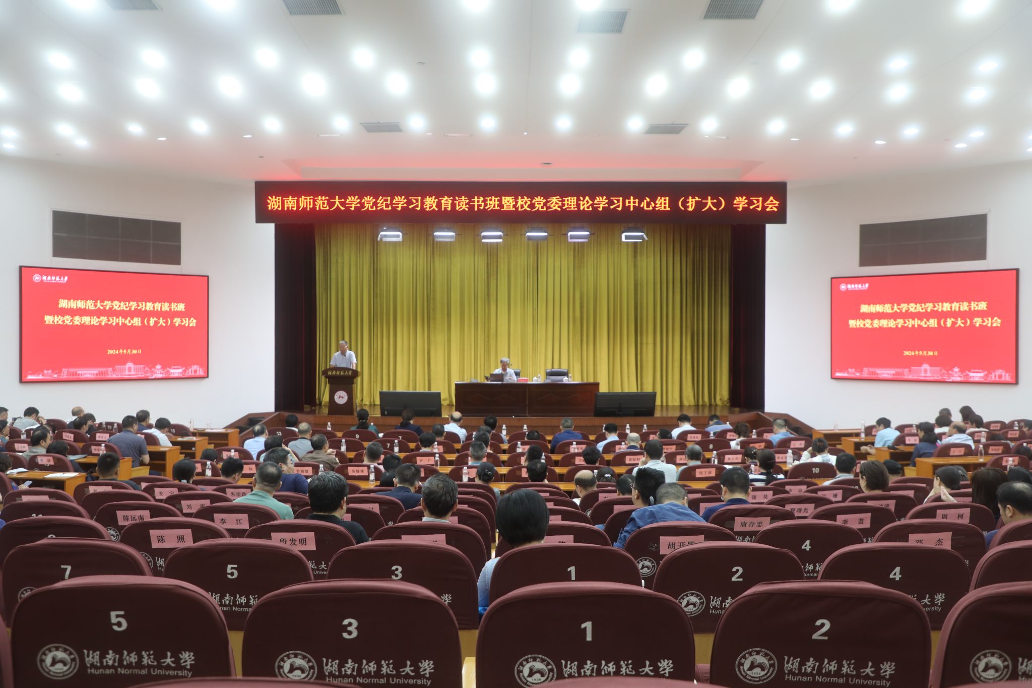 (记者 吴乐 郭若兰 刘慧琳)5月30日下午,我校在国际学术报告厅召开党纪学习教育读书班暨校党委理论学习中心组(扩大)学习会,深入学习领会习近平总书记关于全面加强党的纪律建设的重要论述,学习《中国共产党纪律处分条例》,准确掌握廉洁纪律、群众纪律的主旨要义和规定要求。全体在家校领导参加学习,校党委副书记周俊武主持会议。