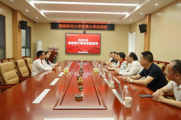 (供稿 附属小学)5月30日上午,湖南省委教育工委委员、省教育厅党组成员、副厅长孙传贵一行来我校附属小学走访慰问,为附属小学少年儿童送来节日的祝福。我校副校长谢资清陪同参观。