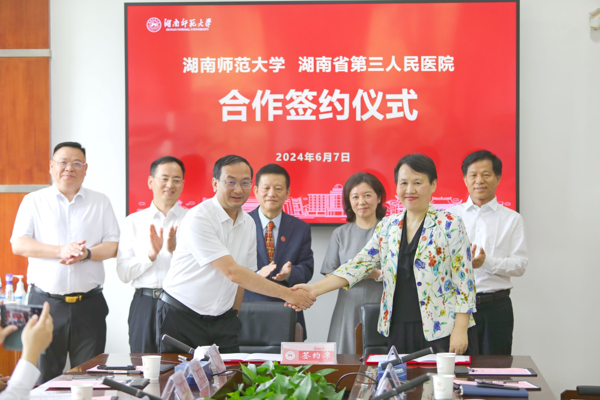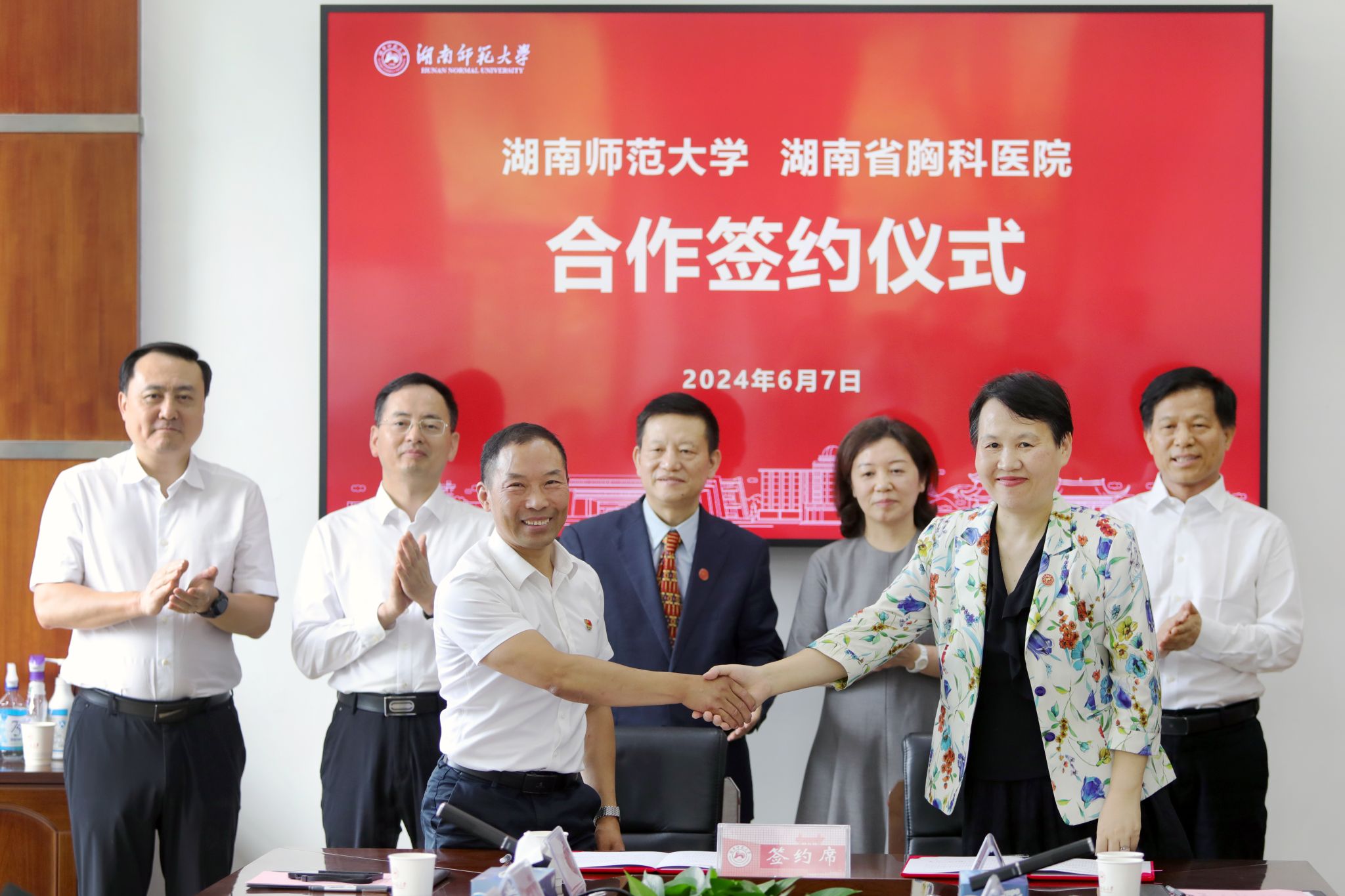(记者 陈丽荣 马铁泉 黄依依)6月7日,我校与湖南省胸科医院、湖南省第三人民医院合作签约仪式举行。湖南省卫生健康委员会副主任易露茜、刘平安,校党委书记、欧洲科学院院士蒋洪新,副校长谢资清出席签约仪式。仪式由副校长刘怀德主持。