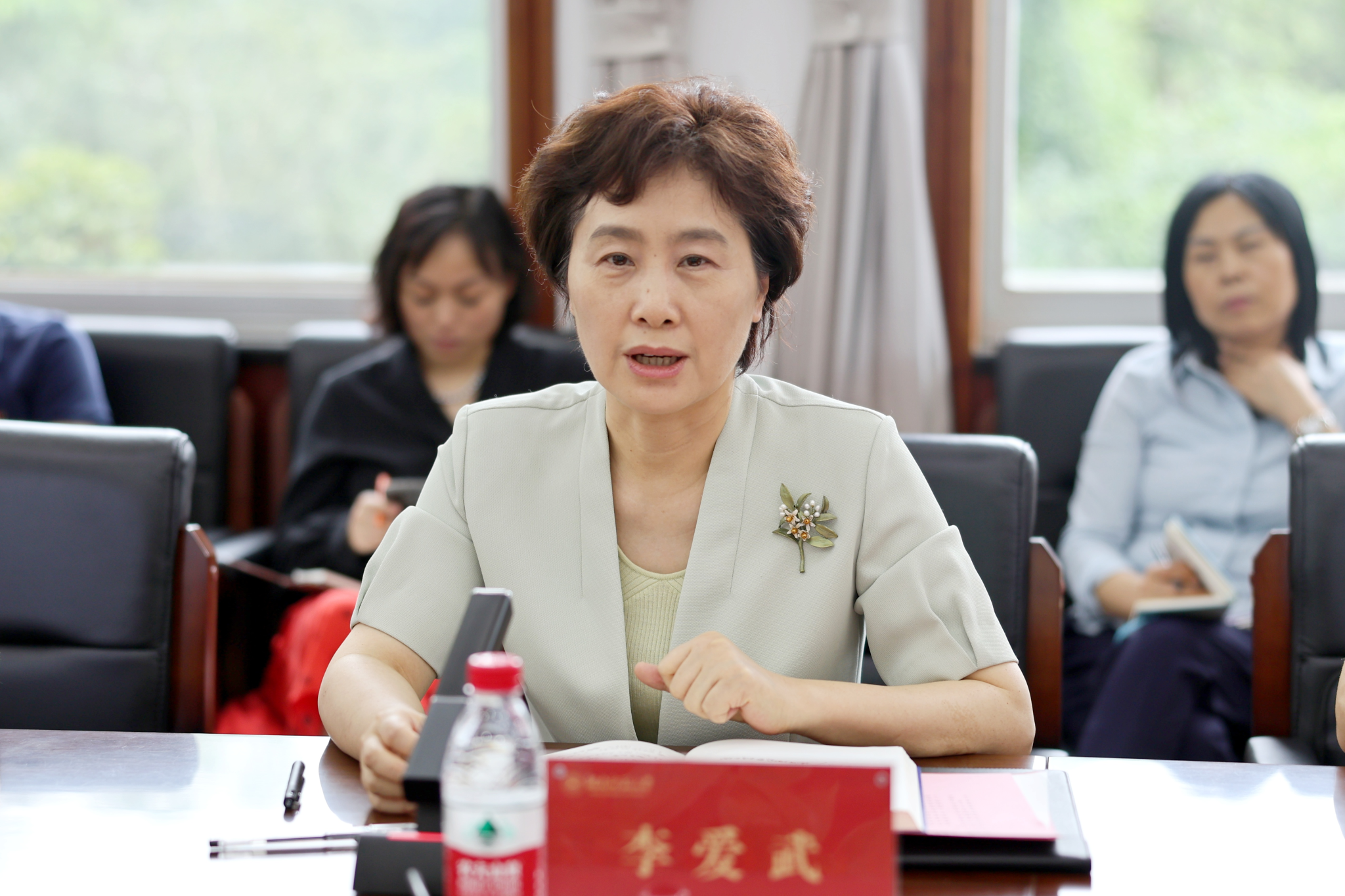 李爱武对我校长期以来在文旅决策咨询、人才培养、课题研究、创意策划等方面提供的智力支撑和作出的贡献表示感谢。她指出,目前湖南省正处于文旅转型发展的关键时期,需要进一步深化厅校全维度、系统化的务实合作,实现优势互补、资源共享,更好担负起新时代新的文化使命,在建设中华民族现代文明中展现湖南新作为。一是找准合作重点,突出目标导向、问题导向,依托高校学科优势、平台优势、人才优势,拓展合作领域,探索文旅新业态、新模式、新消费,推动文化和科技、文化和旅游融合发展走深走实;二是创新合作机制,探索建立教师柔性挂职机制,邀请高校课题组组长、青年教师等参与文旅部门重点工作、重要调研、重大活动,加强文旅行业协会、文旅企业与高校的交流合作,开展文旅人才定向培养,共同培养更多实践性、复合型人才;三是优化合作理念,不断夯实合作基础、健全合作体系、优化合作机制,打造跨学科交叉融合交流平台,精准对接文旅行业发展需求,将高校与文旅相关的研究成果有效转化为政策成果、工作成果,加快培育发展新质生产力,把文旅业打造成高质量发展的新增长点。