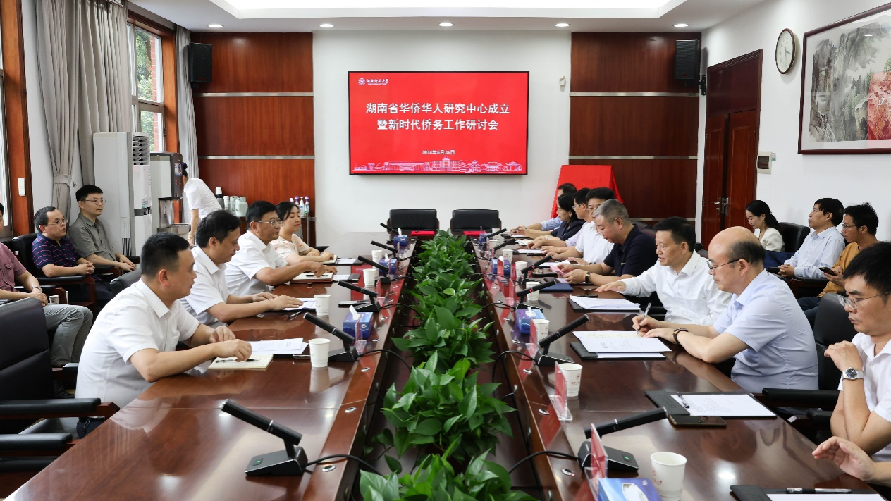 (记者 陈丽荣 马铁泉 刘偲睿)6月26日下午,湖南省华侨华人研究中心成立仪式暨新时代侨务工作研讨会在校办二会议室举行。湖南省侨联党组书记孙民生、我校党委书记蒋洪新出席会议。会议由党委副书记周俊武主持。