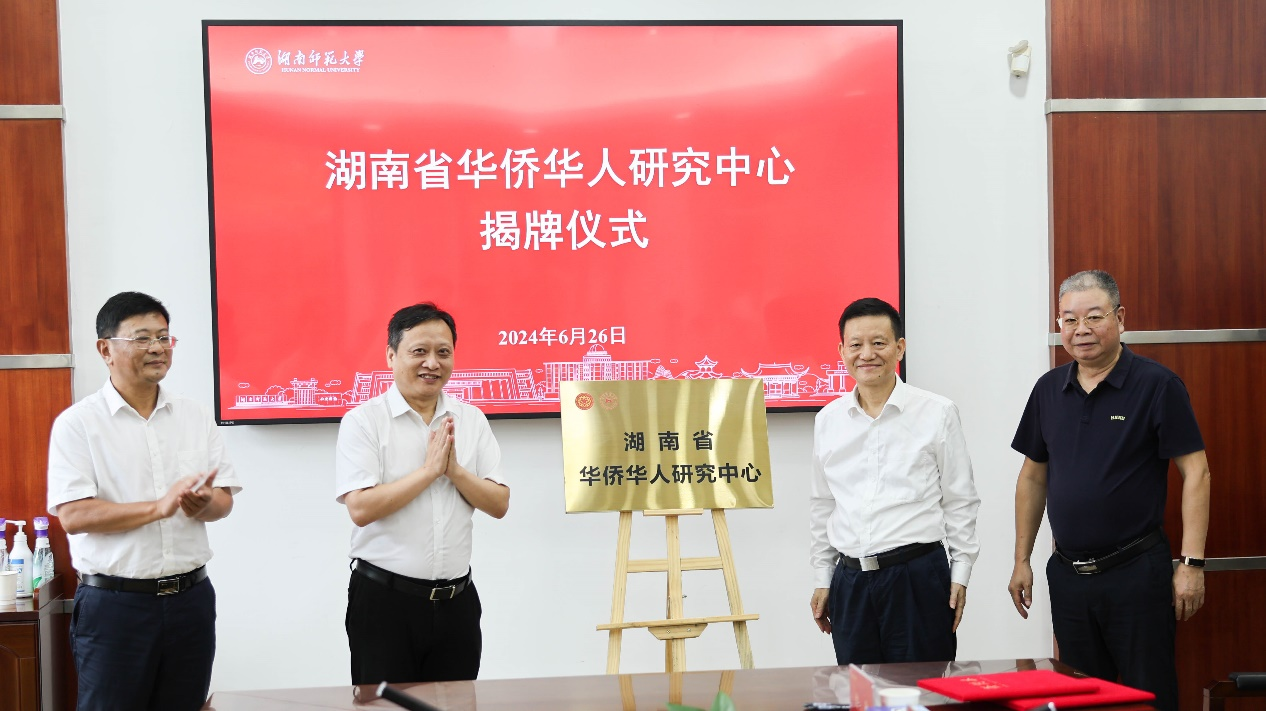 孙民生与蒋洪新为湖南省华侨华人研究中心揭牌。