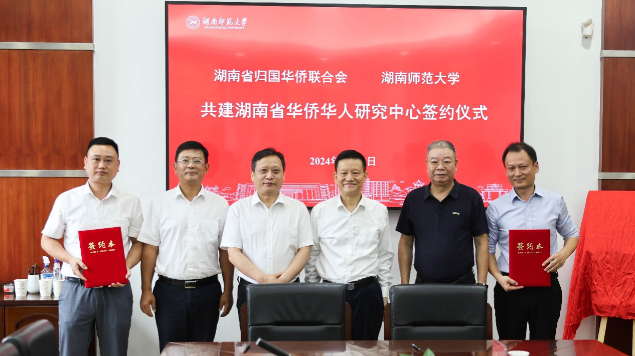 我校国汉院副院长沈敏与湖南省侨联办公室主任江涛代表双方签订了共建湖南省华侨华人研究中心合作协议。
