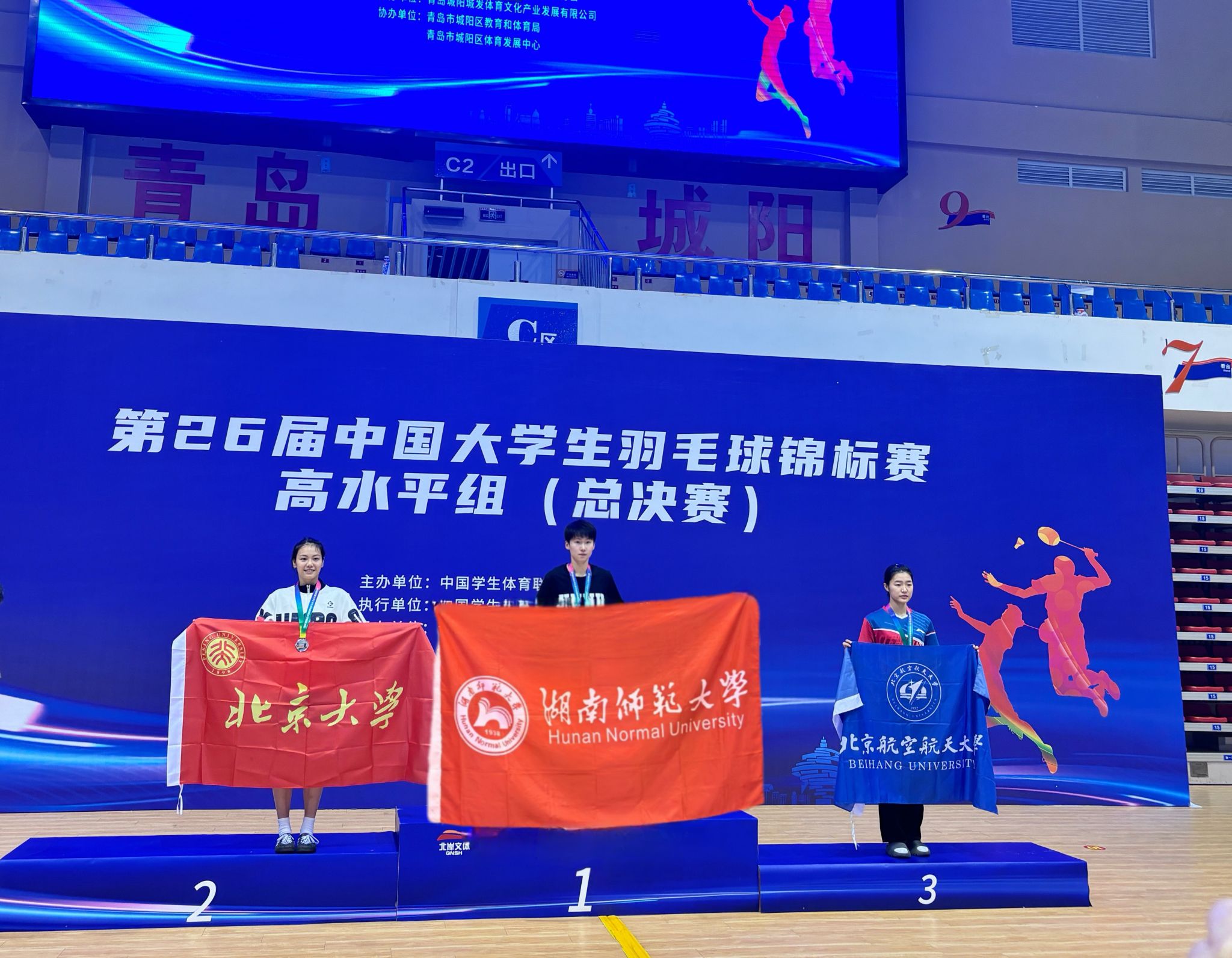 (通讯员 郭然)近日,2024年全国大学生羽毛球锦标赛(高水平组)总决赛落下帷幕。本次比赛我校11名运动员参加男女团体,女子单打,女子双打,混合双打等多个项目角逐。我校2024级运动训练专业研究生高睿在总决赛中战胜北京大学,上海交通大学、同济大学、华中师范大学等高校的劲敌,夺取总决赛女单冠军。