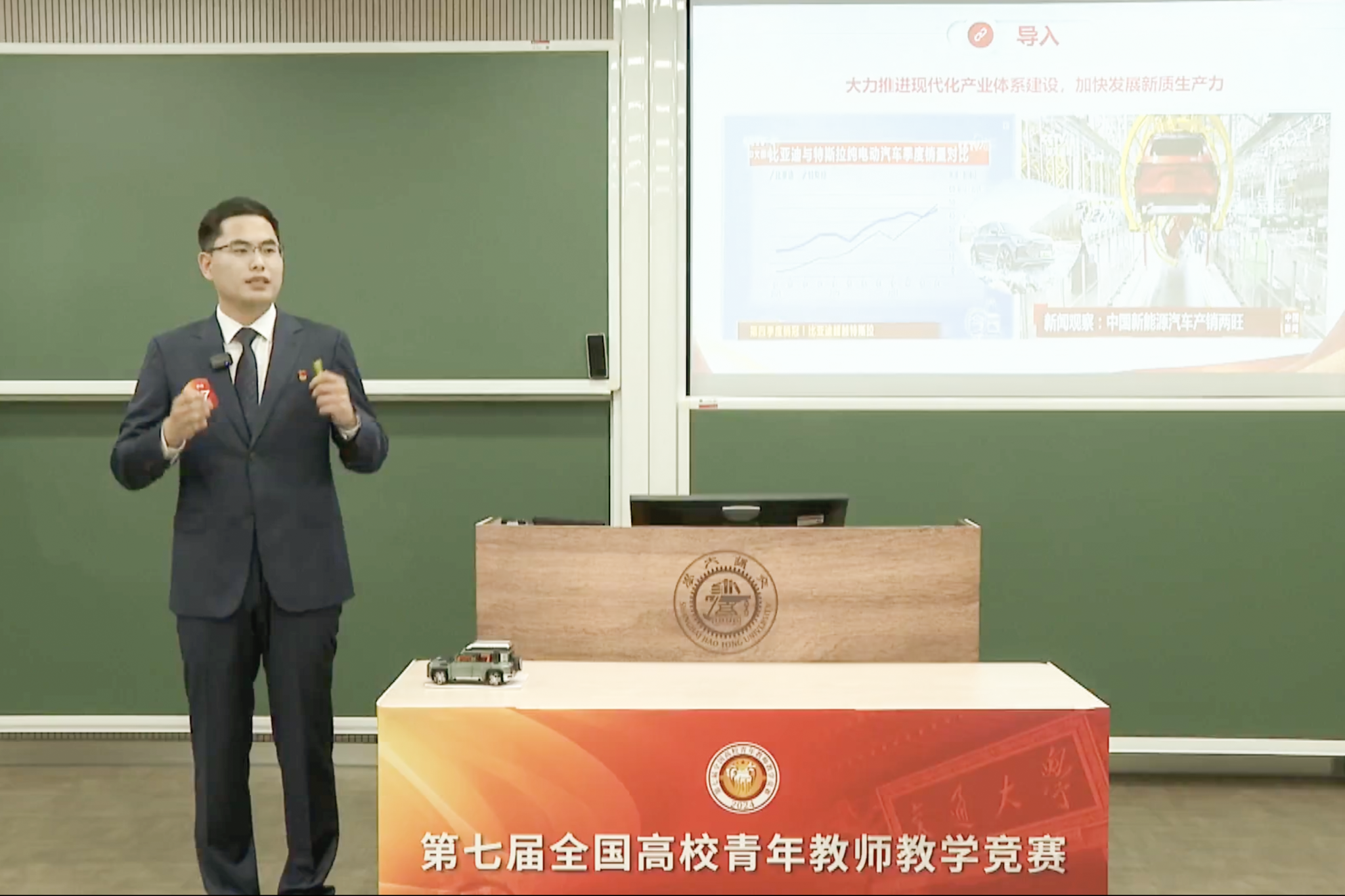本次竞赛有来自全国31个省区市和新疆生产建设兵团的156名选手同台竞技,邢鹏飞老师凭借深厚的理论功力、扎实的教学功底、先进的教学设计以及特色鲜明的教学风格,主讲课程《习近平新时代中国特色社会主义思想概论》,获得思想政治课专项组一等奖(全国第三名)。这是我校第三次选派青年教师参加全国青教赛,第一次取得全国一等奖的优异成绩,也是湖南省思政课教师在该项赛事的第一个全国一等奖。
