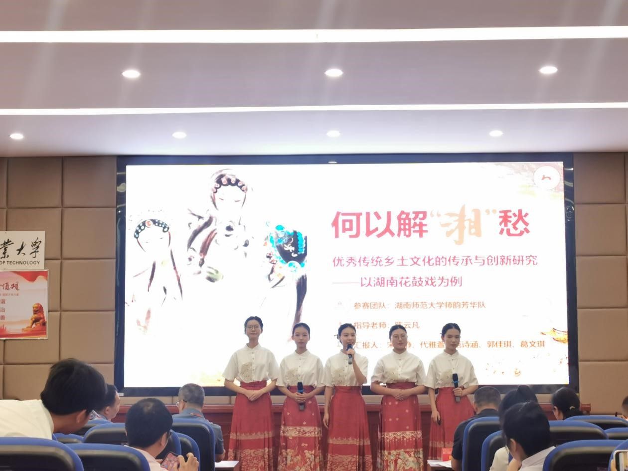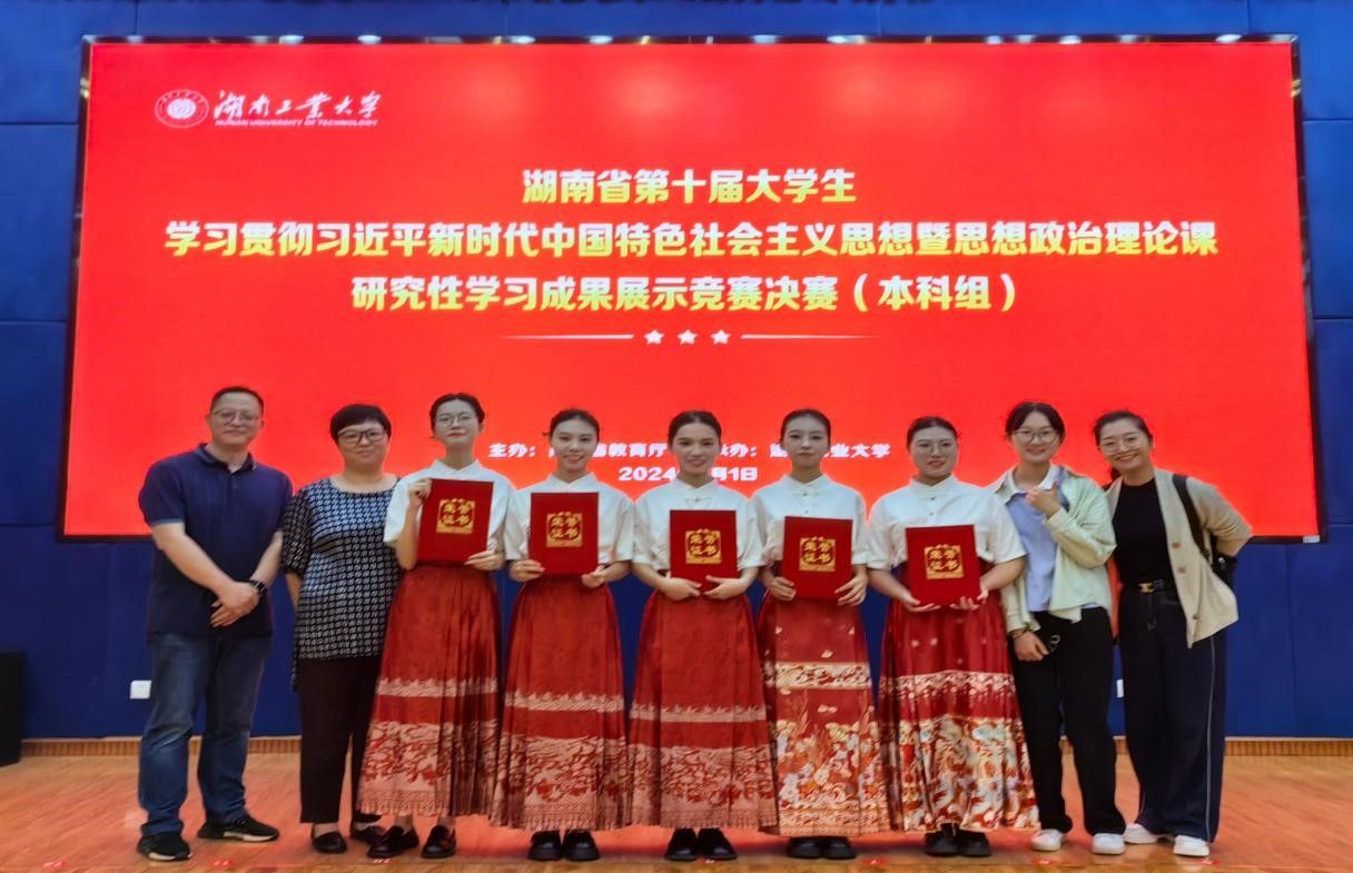 (供稿 马克思主义学院)近日,湖南省教育厅发布了《湖南省教育厅关于公布湖南省第十届大学生学习贯彻习近平新时代中国特色社会主义思想暨思想政治理论课研究性学习成果展示竞赛结果的通知》,由我校商学院范诗涵、代雅萱、葛文琪、郭佳琪、宋佳静等5位同学组成的研究性学习小组在马克思主义学院陈云凡教授指导下,完成了研究性学习成果报告《何以解“湘”愁:优秀传统乡土文化的传承与创新研究——以湖南花鼓戏为例》。经过决赛阶段的精彩展示和答辩,荣获本科组特等奖。