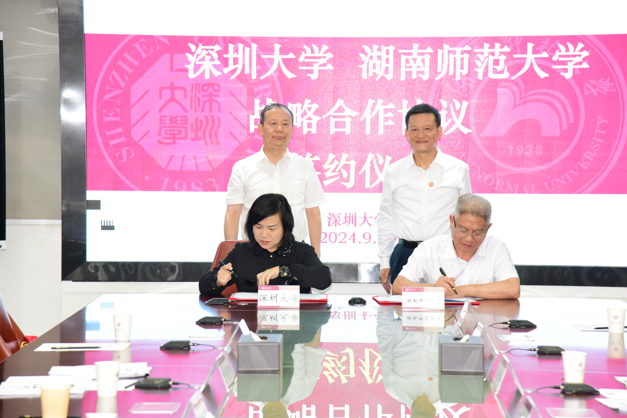 (供稿 发展规划与学科建设处)9月20日下午,我校与深圳大学签署战略合作框架协议,携手开启两校深化合作新篇章。深圳大学校长、中国科学院院士毛军发,我校党委书记、欧洲科学院院士蒋洪新,副校长唐贤清出席签约仪式。仪式由深圳大学副校长张晓红主持。