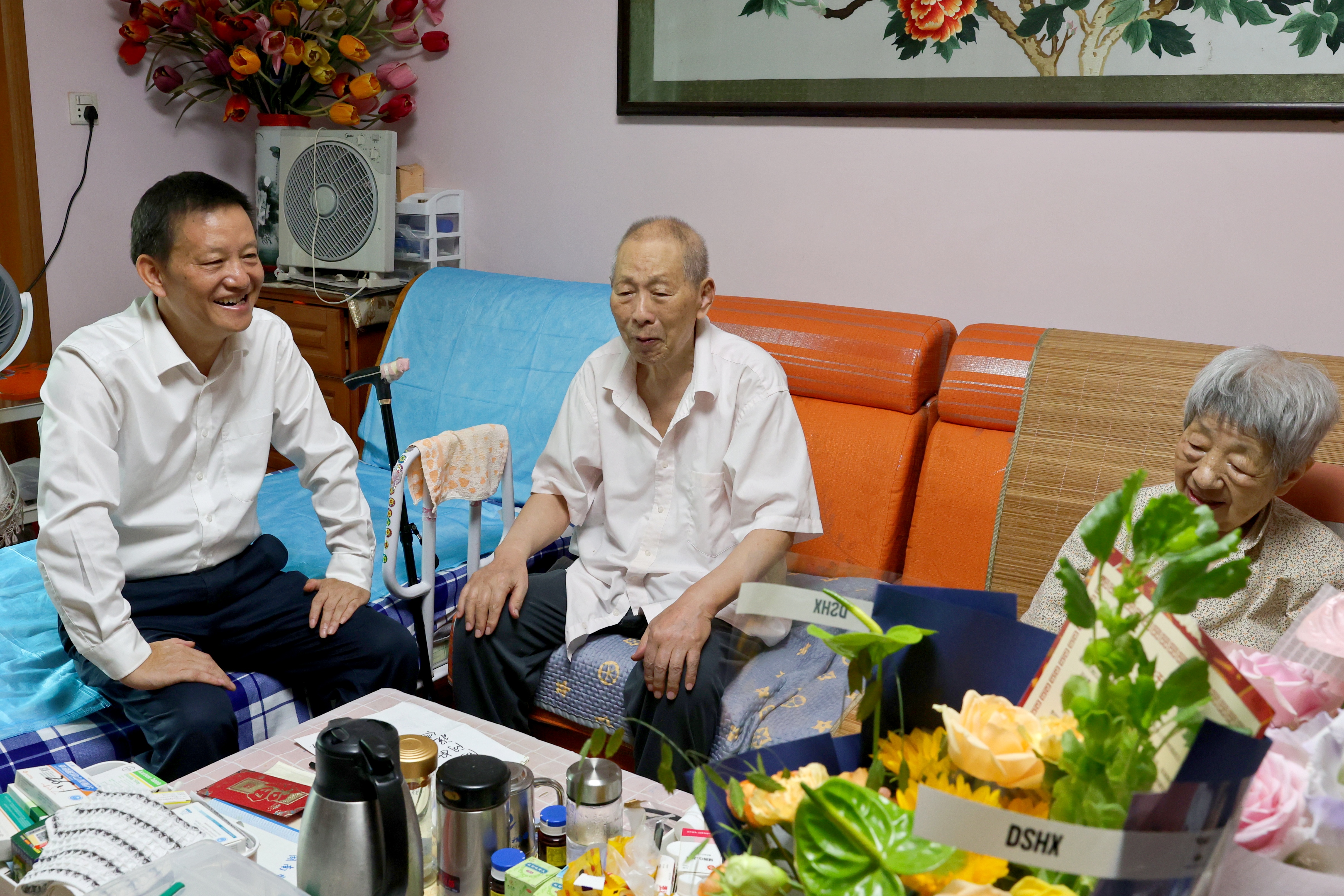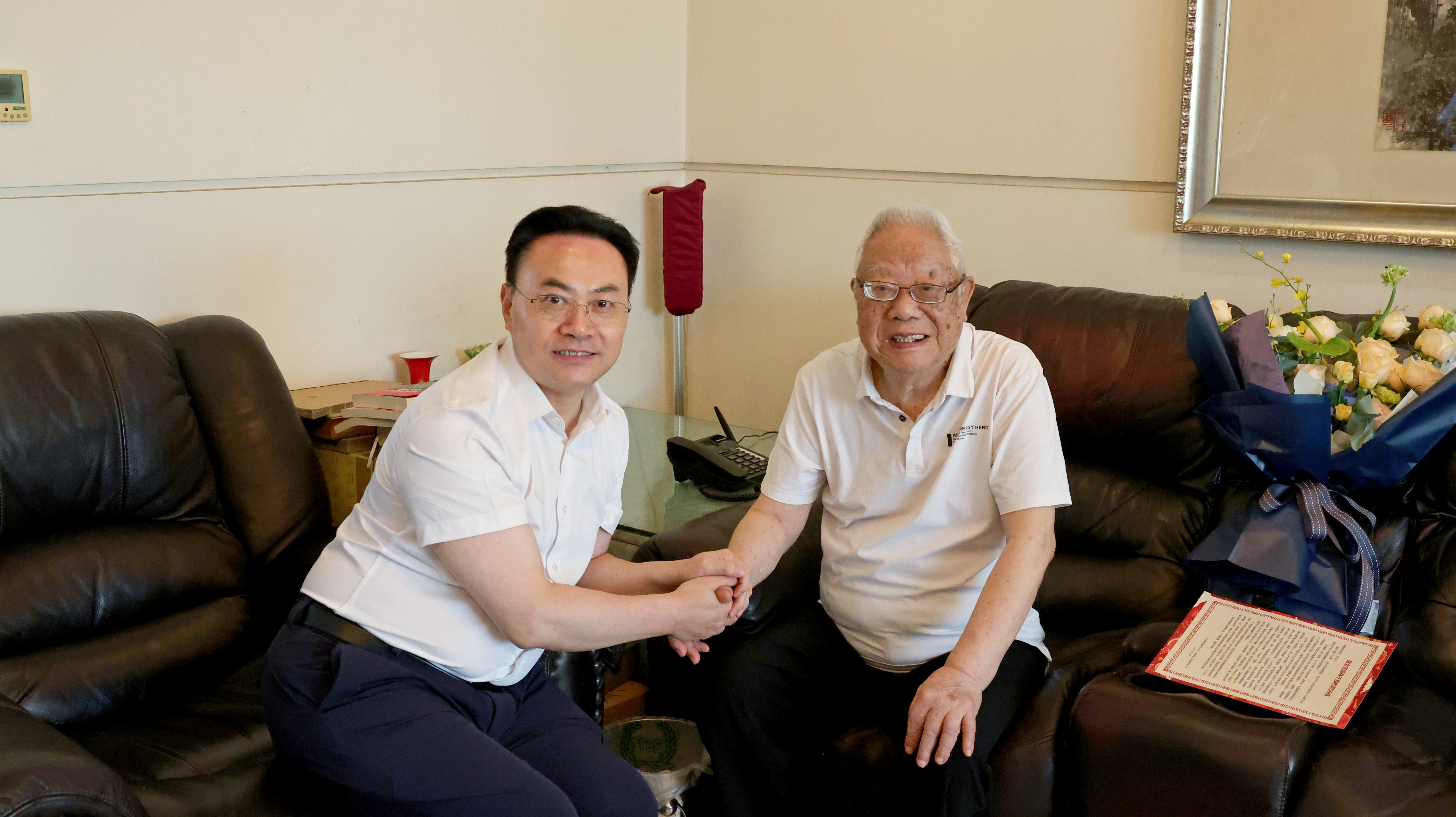 刘仲华来到离休干部、原副校长雷普文家中。他向雷老介绍了学校“双一流”建设发展情况,表示学校取得的成绩离不开老一辈的努力和付出;他聆听了雷老讲述革命工作经历,衷心祝愿雷老节日快乐。
