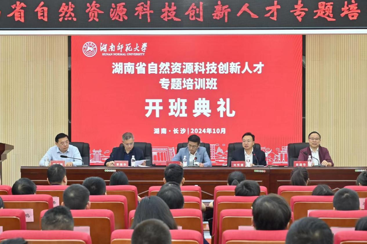 (供稿 地理科学学院)近日,湖南省自然资源厅在我校举办首个湖南省自然资源科技创新人才专题培训班。省自然资源厅党组成员、副厅长谢文,我校副校长刘怀德出席开班仪式。典礼由我校地理科学学院院长周国华主持。