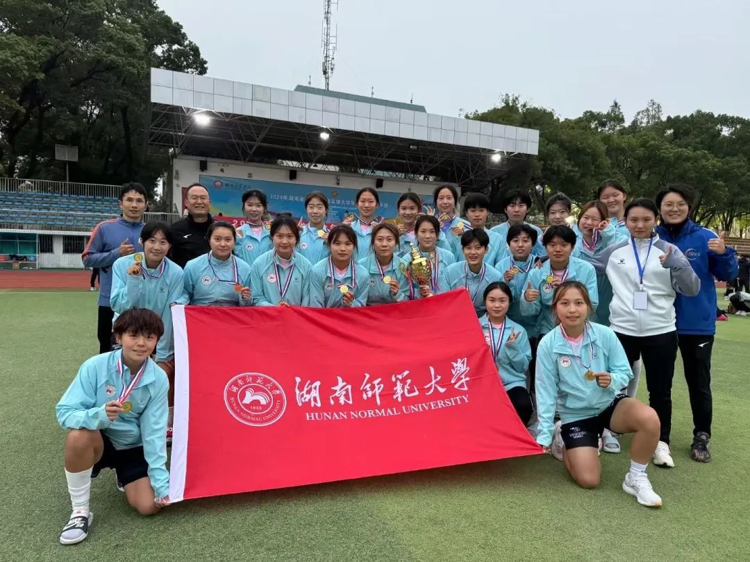 (供稿 体育学院)10月20日,2024年湖南省青少年校园足球大学生联赛(高水平组)在湖南农业大学足球场落下帷幕,我校男、女子足球队通过点球以3:2和7:5的成绩战胜对手,包揽男女子组冠军。
