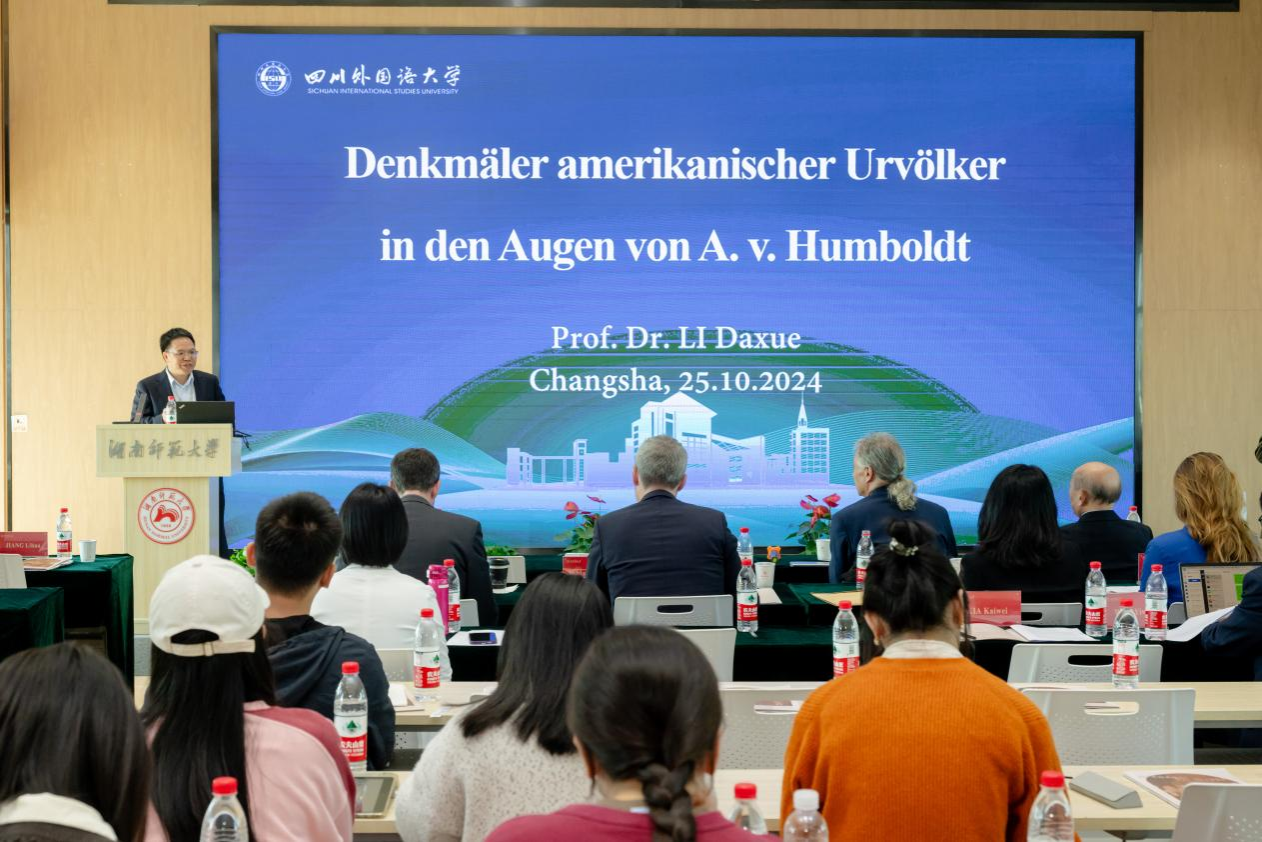 (供稿 外国语学院)10月23日至26日,由我校外国语学院和洪堡跨学科研究中心共同举办的第二届洪堡日“重审世界”系列学术活动在我校举行。活动由洪堡主题学术讲座、主旨报告等组成,旨在纪念德国博物学家、旅行作家和哲学家亚历山大·冯·洪堡(1769—1859)。校党委书记、欧洲科学院院士蒋洪新会见了与会专家并进行了交流,校纪委书记姚春梅及国内外洪堡研究和德语文学专家在内的100余位学人、师生参加了本次系列活动。