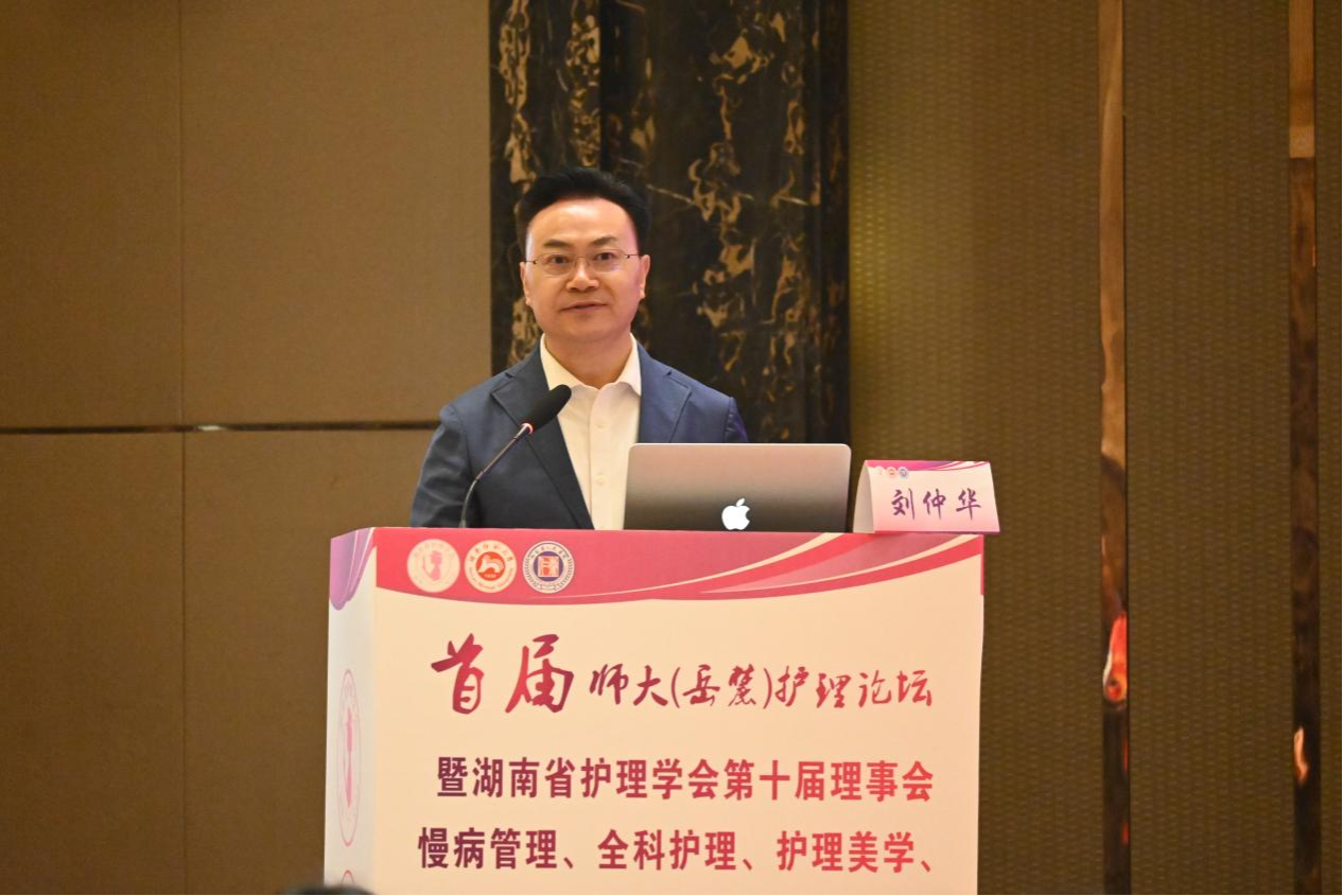 (供稿 护理学院)11月15日,我校护理学院成立揭牌仪式暨师大首届(岳麓)护理论坛暨湖南省护理学会第十届理事会慢病管理、全科护理、护理美学、护理伦理、门诊专业委员会成立开幕式在长沙举行。教育部高等学校护理学类专业教学指导委员会秘书长孙宏玉、湖南省卫生健康委副主任程博、湖南省护理学会常务副理事长曾清、湖南省人民医院党委书记赵卫华、常德职院院长周华、我校校长刘仲华出席活动。大会由湖南省人民医院副院长李亚敏主持。