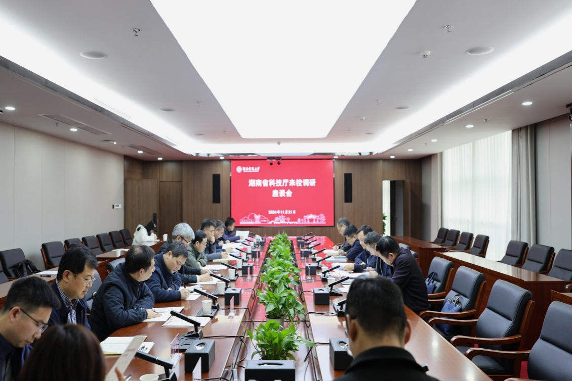 (记者 黄佳 胡玥)11月21日下午,湖南省科技厅党组成员、驻厅纪检监察组组长张登峰带队来校调研,副校长潘安练出席会议,座谈会由科技处处长唐东升主持。