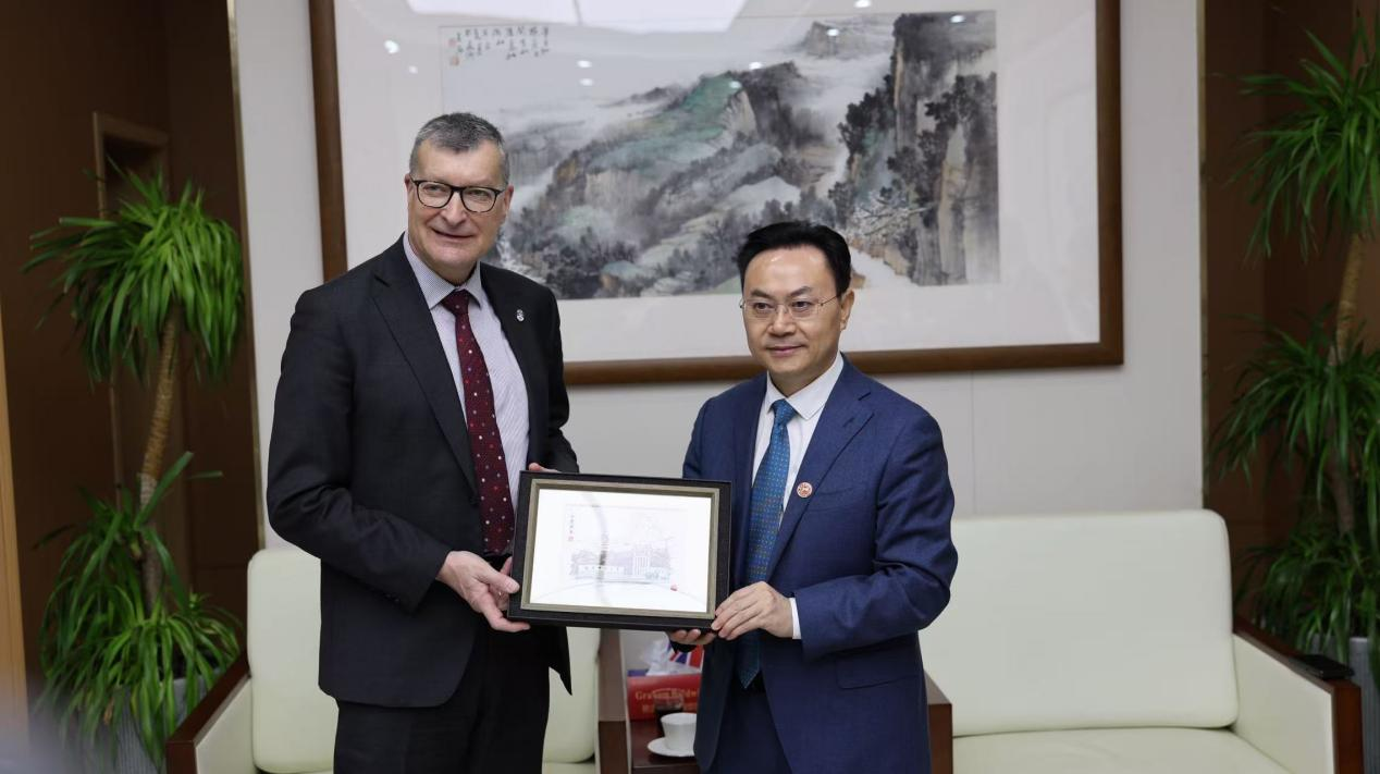 仪式活动结束后,中英两校校长进行了友好交流并互赠纪念品。