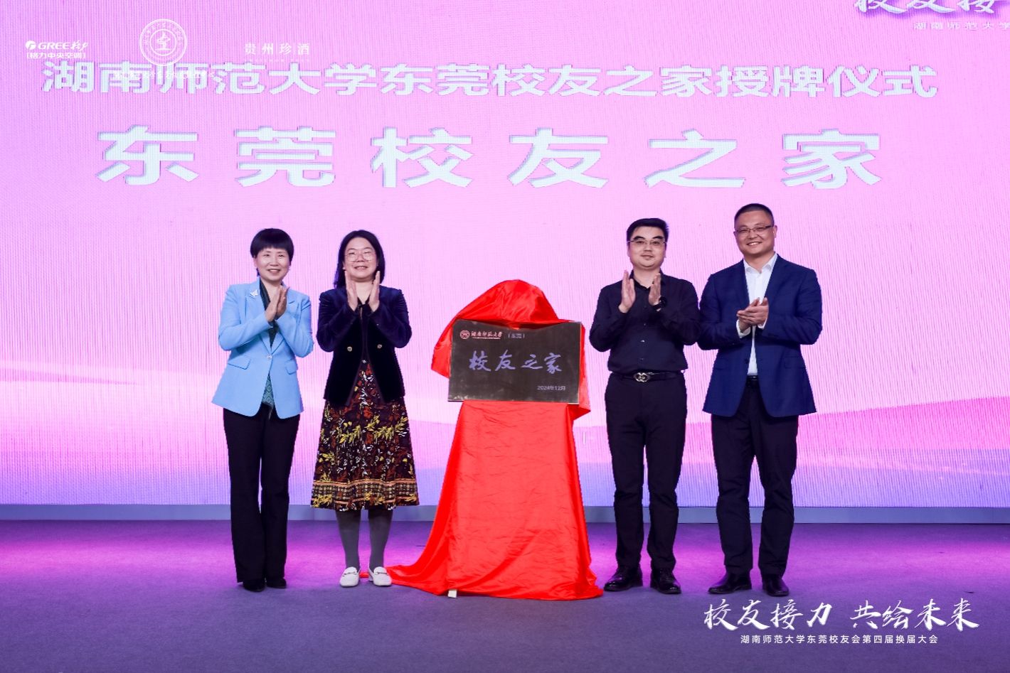 姚春梅、黄丽萍、何帅、王文共同为东莞校友之家进行揭牌。
