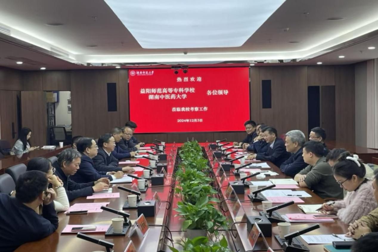 (通讯员 伍韵琛)12月3日下午,益阳师范高等专科学校副校长段学文、湖南中医药大学后勤处处长王健一行来校调研交流,调研座谈会在三棵树广场科研楼四楼会议室召开。我校副校长刘怀德出席座谈会,会议由后勤管理处(后勤集团)处长(总经理)兼基建处处长黄智勇主持。