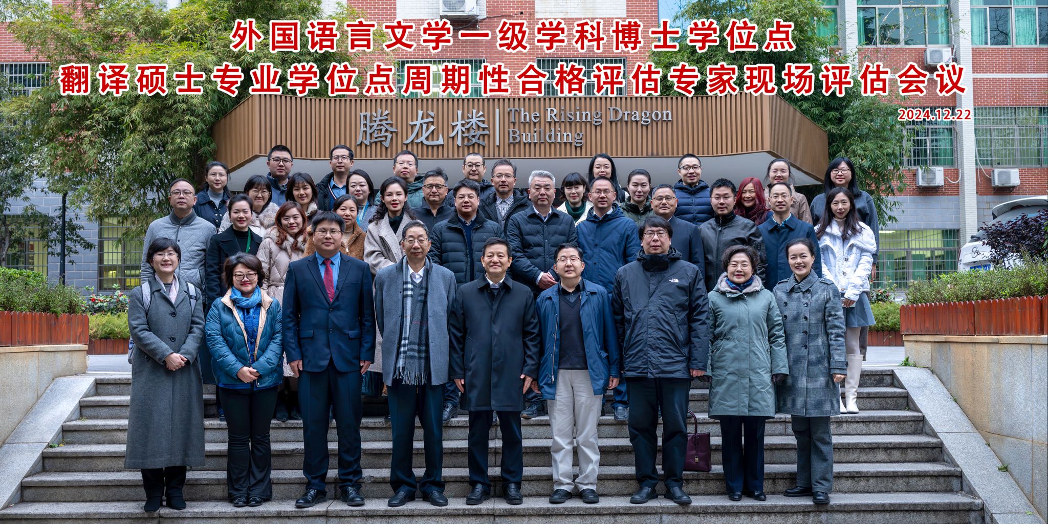 (供稿 外国语学院)12月22日,我校外国语言文学一级学科博士学位点、翻译硕士专业学位点周期性合格评估专家现场评估工作会议在外国语学院腾龙楼举行。校党委书记蒋洪新出席会议。会议由校研究生院学位办主任杜继军、外国语学院党委书记沈贤岚主持。