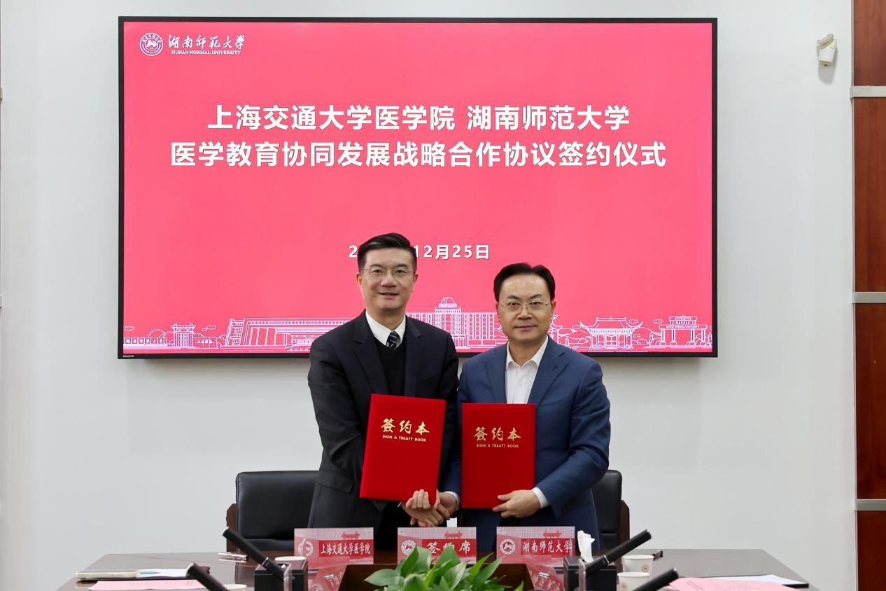 (记者 黄依依 武晓露)12月25日下午,上海交通大学医学院与我校医学教育协同发展战略合作协议签约仪式在校办公楼二会议室举行。上海交通大学医学院党委副书记、副院长吴正一,中国工程院院士、我校校长刘仲华出席仪式。会议由医学部党工委书记、主任祝益民主持。