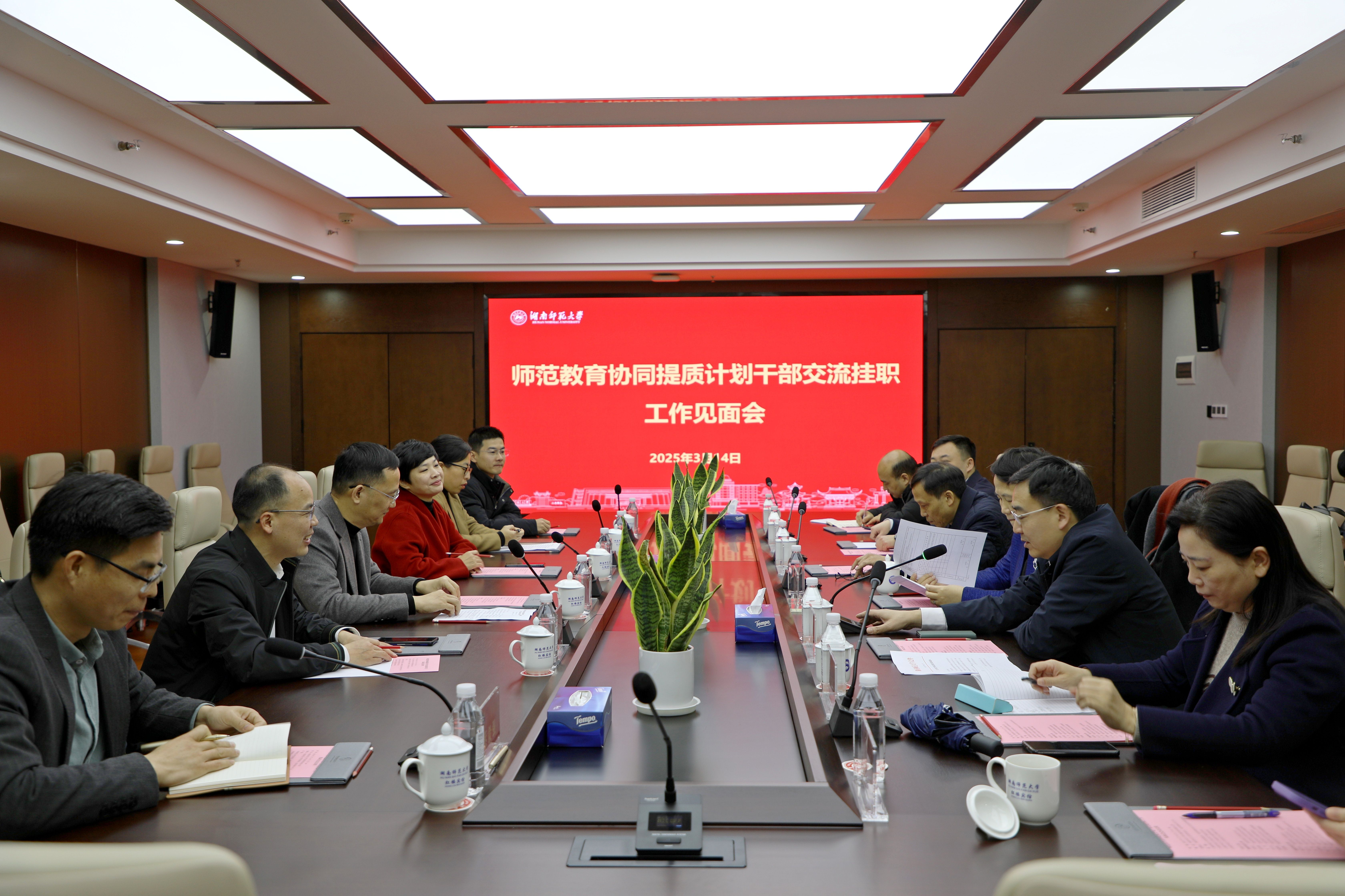 李顺兴对我校给予的支持和关心表示感谢。他表示,湖南师大作为教育部“师范教育协同提质计划”第八组团牵头高校,事业发展成果丰硕,许多宝贵经验值得学习借鉴。本次选派三位青年教师到湖南师大挂职学习,既是推动学校在新时期实现更快更好发展的重要举措,也是学校落实立德树人根本任务的内在要求。闽南师大将依托办学优势、区位优势,积极探索深化两校“文化+科技”交流合作的新路径、新模式,为更好担负新的文化使命,加快建设教育强国贡献力量。