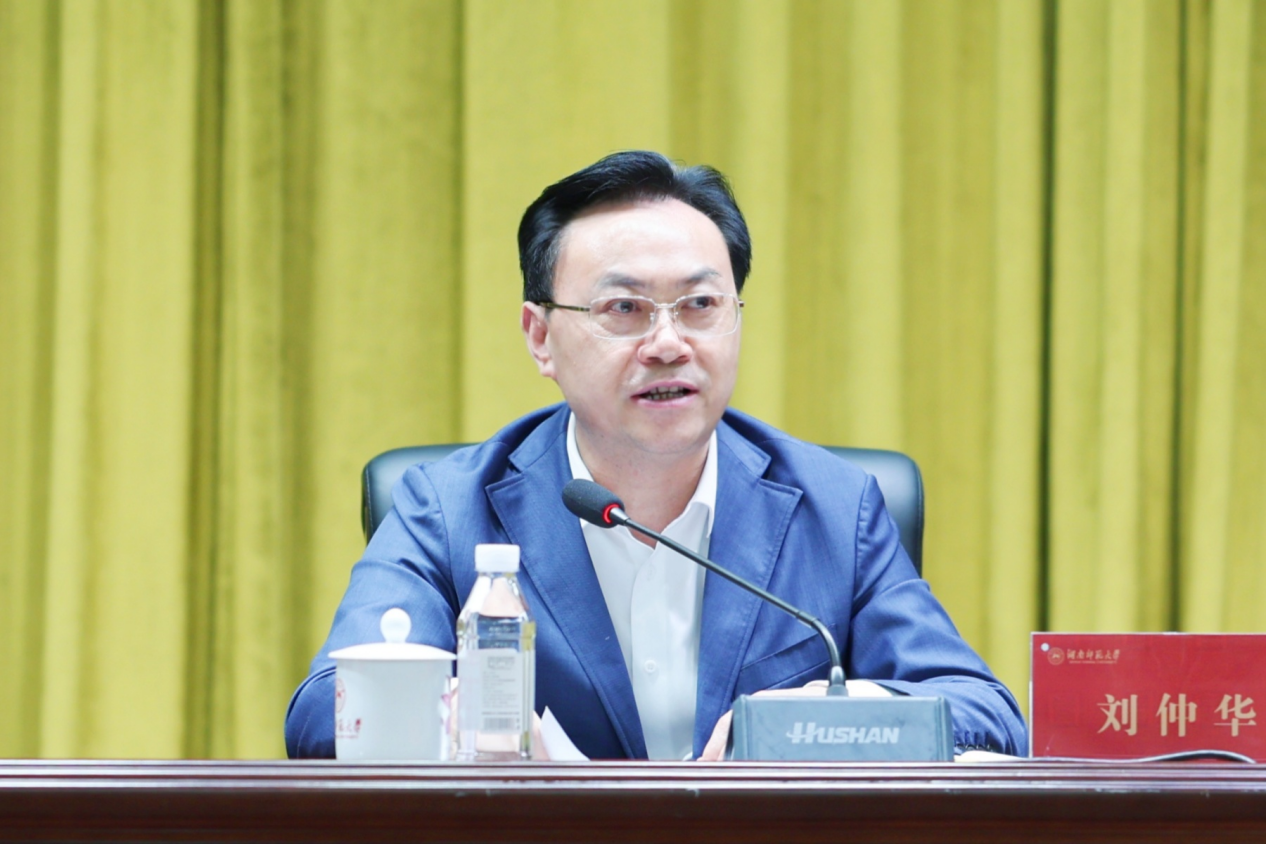 刘仲华强调要以高质量党建引领学校事业高质量发展,为加快建设特色鲜明的高水平大学提供坚强政治保障,并提出四点工作要求:一是提高站位,扎实开展深入贯彻中央八项规定精神学习教育。全校各级党组织和全体党员,要深入学习领会习近平总书记重要讲话和重要指示精神,进一步提高政治站位,把思想和行动统一到党中央重大决策部署上来;要扛牢主体责任,加强组织领导、分类指导和宣传引导;要精心抓好组织实施,力戒形式主义,有力有序推动学习教育走心走深走实,确保取得实效。二是把牢龙头,以高质量党建引领事业发展。要对照改进短板问题,持续推动实施党建引领工程,把党的领导全面融入学校治理体系;要从讲政治的高度紧密对接省里“十大工程”谋划布局抓落实,以钉钉子精神一项一项提升推进党建工作;要以“四个面向”为指引,主动对标双一流建设要求,科学谋划“十五五”工作,以高质量党建引领事业高质量发展,不断提升学校治理能力和水平。三是抓住关键,纵深推进全面从严治党。深入推进巡视巡察整改“回头看”,开展好同类同改,防止问题反弹回潮。当前,高校全面从严治党形势依然严峻,师德师风失范等违纪违法现象依然存在,要时常开展警示教育,常与教职员工谈心谈话,让大家受警醒、明底线、知敬畏,防患于未然;要提前部署应对六大重点整治领域,做好排查,强监管抓整治;要进一步全面梳理、查漏补缺、系统整改,努力营造干部清廉、政治清明的良好政治生态。四是坚守底线,构建平安和谐清朗的校园。安全是学校发展的底线,全校上下必须高度重视,深刻认识做好校园安全工作的极端重要性,把安全工作当作第一要务来抓。要以时时放心不下的责任感,保障师生生命财产安全和校园和谐稳定,确保校园安全工作事事有人管、件件有落实,努力为师生营造更加安全安心安定的学习工作生活环境。他强调,全面从严治党永远在路上,党的自我革命永远在路上,维护校园安全、稳定永远在路上,要认真贯彻落实省委省政府各项决策部署,引导全校广大教职员工提高认识,坚守底线、锤炼作风,为推进学校双一流建设和事业发展提供有力保障,为建设教育强省做出湖南师大的更大贡献。