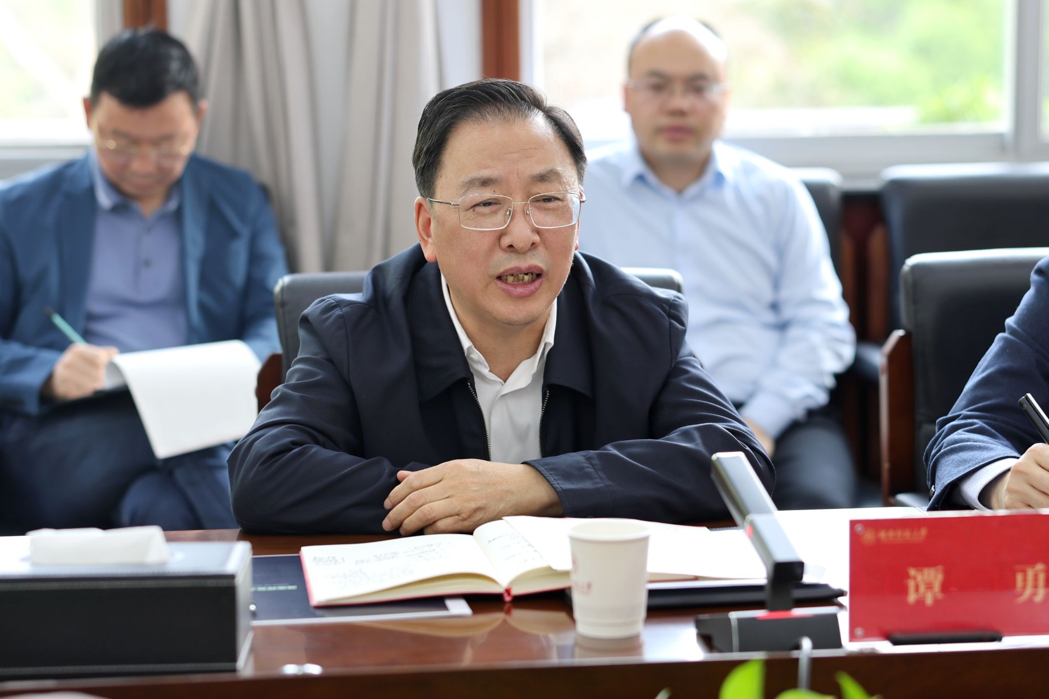 (记者 马铁泉 黄依依 洪通)4月7日,长沙市委副书记、湖南湘江新区(长沙高新区)党工委书记、岳麓区委书记谭勇一行来校调研重点项目建设。我校校长、中国工程院院士刘仲华,副校长刘怀德、杨震、潘安练出席会议。座谈会由谭勇主持。