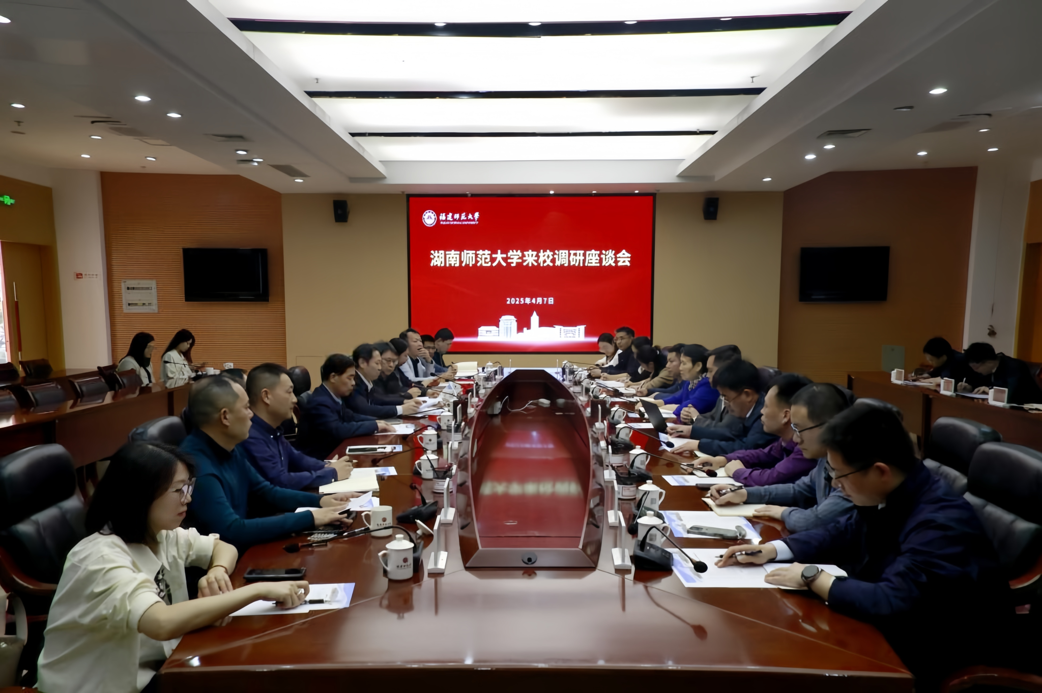 福建师范大学副校长方千华,闽南师范大学党委书记李顺兴、副校长张宏怡分别出席调研座谈会。会上,福建师范大学、闽南师范大学分别介绍了协同提质计划工作进展情况及统筹协调兄弟院校推进跨区域合作取得的积极成效,围绕师范教育协同提质计划组团工作、办学发展情况等内容进行了深入交流。两校共同表示,希望在学科交叉、师资共育、教学成果培育、资源共享等领域深化合作,共同打造师范教育协同发展的标杆样板。