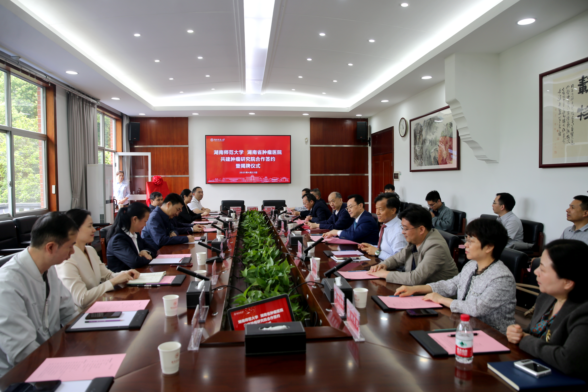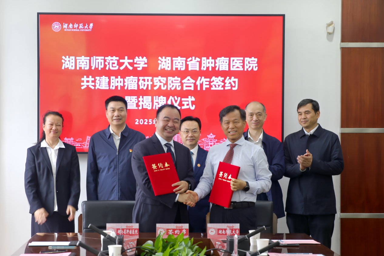湖南省肿瘤医院代表,我校校长办公室、发展规划与学科建设处等职能部门负责人参加签约仪式。