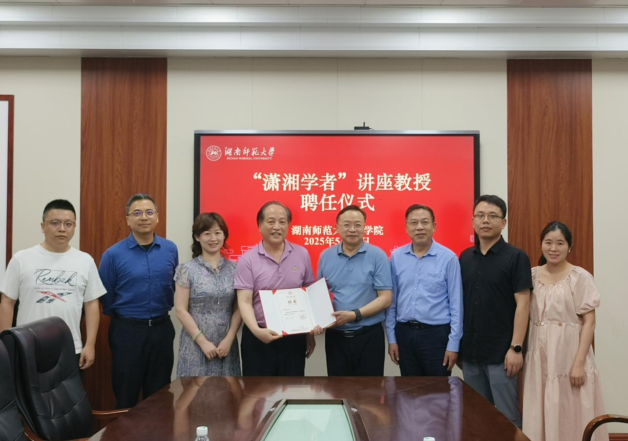 (供稿 商学院)5月15日下午,我校在中和楼会议室举行“潇湘学者”受聘仪式,聘任尹向东为“潇湘学者”讲座教授。副校长刘怀德出席授聘仪式。仪式由商学院院长李军主持。