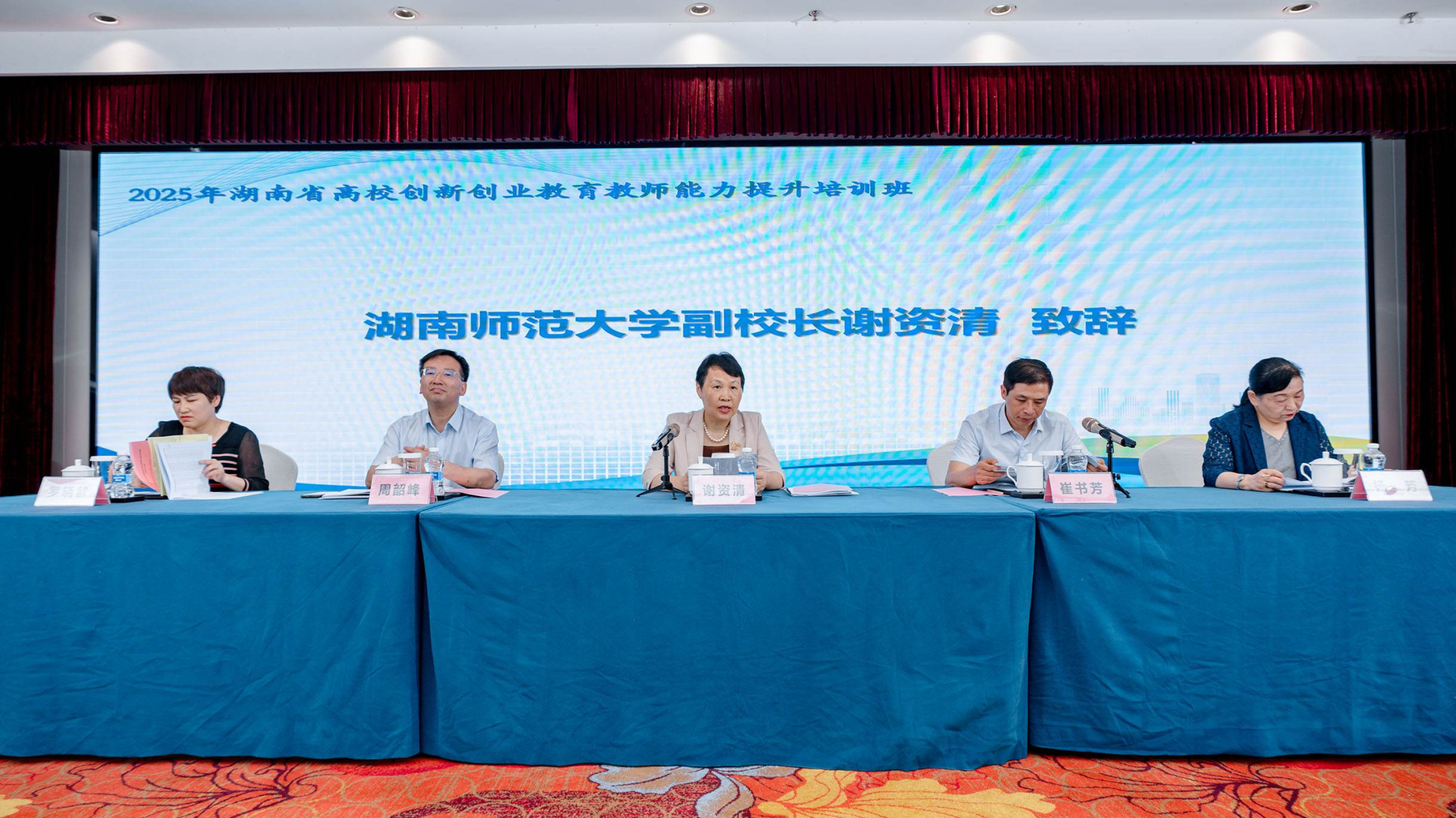(供稿 高等学校师资培训中心)6月10日至12日,由湖南省教育厅主办、我校高等学校师资培训中心承办的“2025年湖南省高校创新创业教育教师能力提升培训班”在长沙举办。我校副校长谢资清教授出席开班仪式并致辞,湖南省教育厅教师工作与师范教育处处长崔书芳、学生处处长周韶峰、中南大学国家创新创业示范基地主任杨芳研究员等领导专家出席开班仪式。仪式由高等学校师资培训中心常务副主任罗晓慧主持。