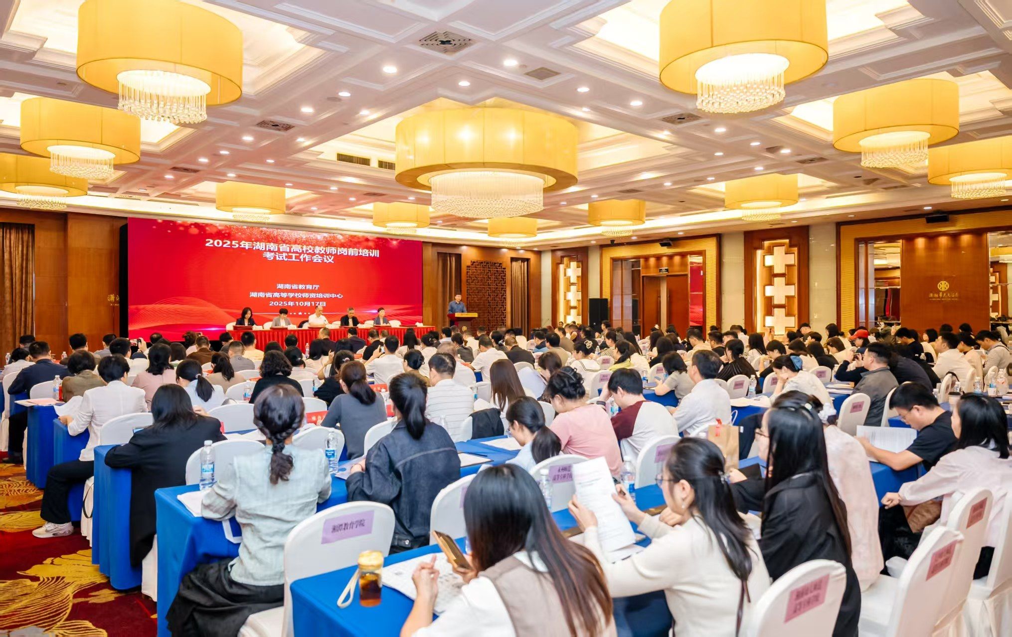 (供稿 高师培训中心)10月17日下午,2025年湖南省高校教师岗前培训考试工作会议在长沙召开。省教育厅教师工作与师范教育处处长崔书芳,湖南省高等学校师资培训中心主任、我校副校长杨震出席会议,会议由湖南省高等学校师资培训中心副主任匡旺秋主持。
