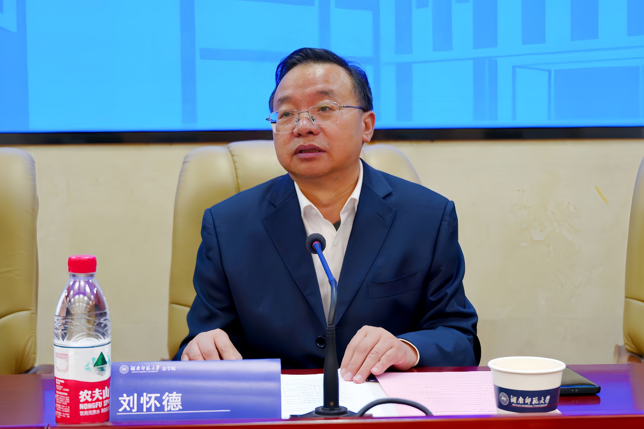 刘怀德向与会领导和专家致以热烈欢迎,并介绍了我校的办学历史、学校与湖南省人民检察院共建检察理论研究基地的历程,以及检察学微专业的课程设计与师资队伍。他勉励同学们珍惜学习机会,树立“以人民为中心”的法治思维,努力成长为高素质法治人才。