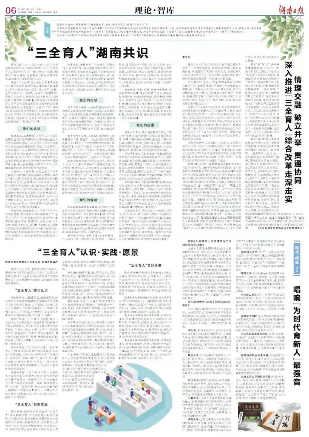 为推动“三全育人”工作进一步走深走实,湖南日报特全文刊发《“三全育人”湖南共识》,并撷取本次论坛精彩观点和成果以飨读者。