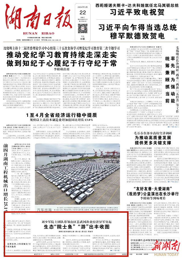 山塘里,鱼虾游弋;稻田中,鱼稻共长……邵阳武冈市,“院士鱼”养殖蔚然成风;餐馆里,“院士稻田鱼”高居特色菜榜首。