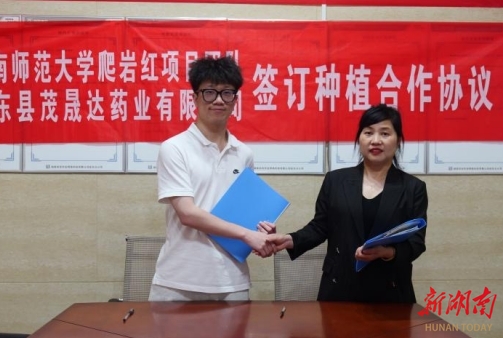 此外,团队前往了当地的中药材企业生产车间和种植场地进行考察学习。同时,与企业负责人和技术人员进行了交流,指导并与企业沟通确定了种植、加工等流程,跟农户和企业签订了相关合作协议,落实了百余亩地的种植计划。桂东县茂晟达药业有限公司负责人徐凡月表示,现有超800余亩爬岩红种植基地,在扦插技术普遍应用后,亩产可达600公斤,爬岩红的生长期为半年,年产量可达480000公斤。