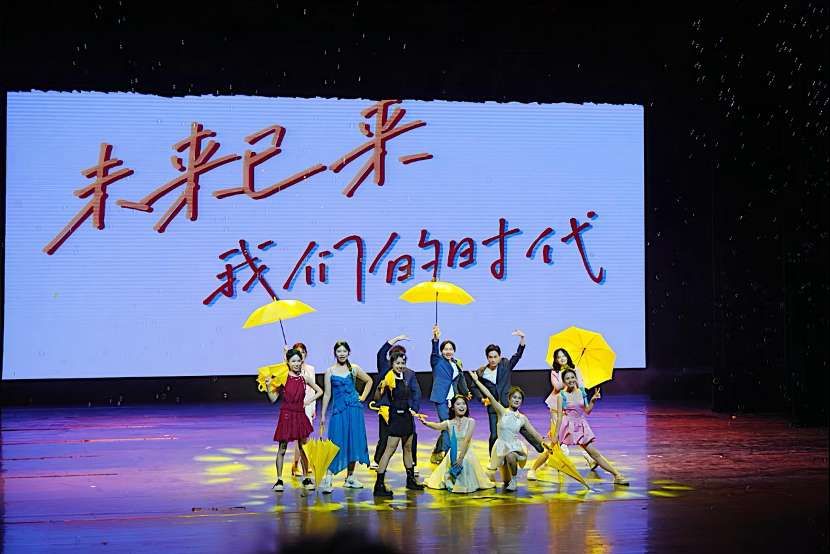 节目《我们在现场》中,活跃在传媒一线的毕业生们以VCR的形式与舞台上的在校生们实现了一场跨屏互动。而在《跨越时空的对话》节目中,所有的观众不约而同跟随台上两位学生演员大声歌唱:“五星红旗迎风飘扬,胜利的歌声多么嘹亮!”剧场里嘹亮自豪的歌声中洋溢着人们对祖国由衷热爱的情感。
