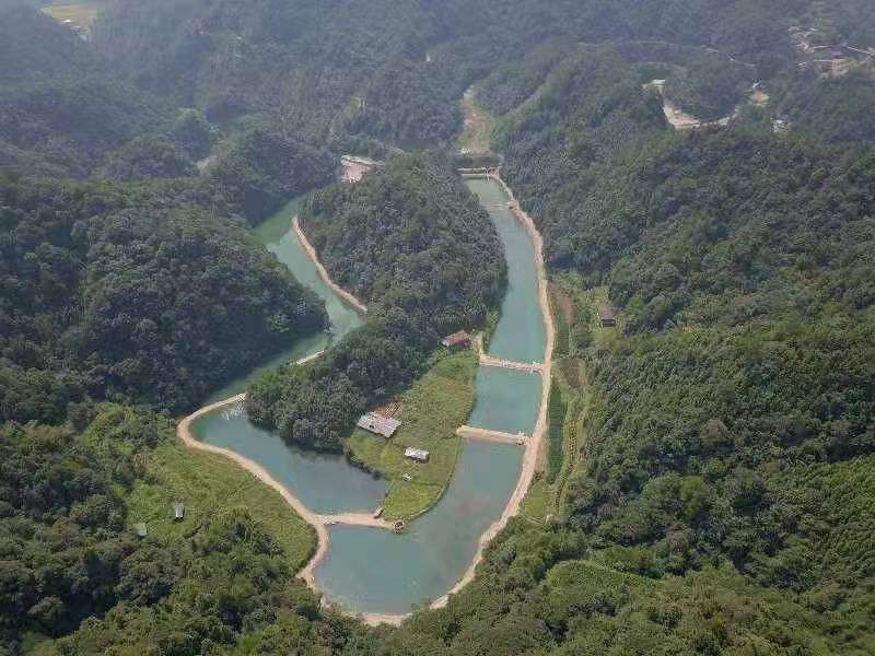 作为立体农业的重要组成部分,依山而建的梯田式鱼塘展现了乡村人民的智慧结晶,助力折尔村新发展。整个鱼塘自2020年开始建设,顺地势环山修建,分为6个塘,总面积70多亩,以四大家鱼养殖为主。“一个塘蓄水水位太高了,淹没两岸,浪费资源嘞。”村干部说道。单个的高水位鱼塘淹没两岸大片山地,既浪费土地资源,在雨季又会对附近居民造成威胁,而梯田式鱼塘很好地解决了这些问题。据悉,养鱼全过程均为人工投喂牧草,零添加保证鱼肉品质,鱼塘自山泉引水,充分发挥当地水质优势,发展高品质生态农业。