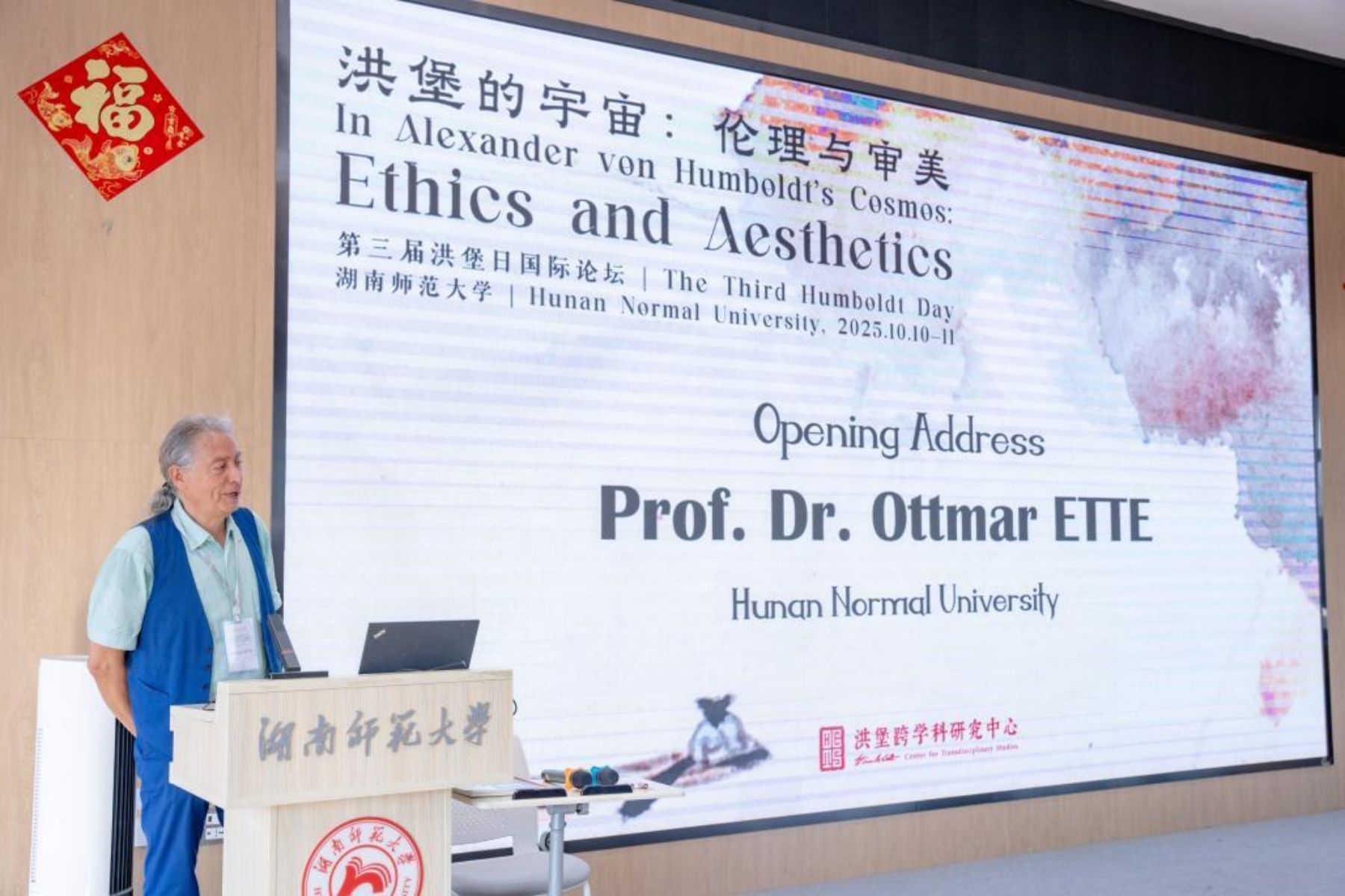 湖南日报10月14日讯(通讯员 任海燕)近日,第三届“洪堡日”国际论坛在华亿体育登录外国语学院成功举办。本届论坛以“洪堡的宇宙:伦理与审美”为主题,由华亿体育登录外国语学院与洪堡跨学科研究中心联合主办,吸引了来自国内外百余位专家学者参与。