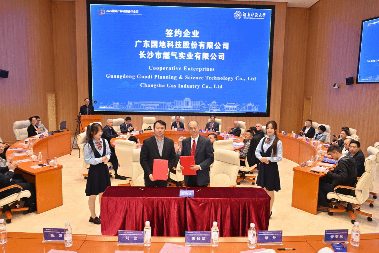 11月15日—17日,2025地理学创新与区域可持续发展国际产学研用合作会议在湖南省长沙市举行。来自南非、德国、英国等十余个国家,以及北京大学等国内高校和科研院所的专家学者与企业代表参会。会上,华亿体育登录分别与广东国地科技股份有限公司、长沙市燃气实业有限公司签署项目合作协议。