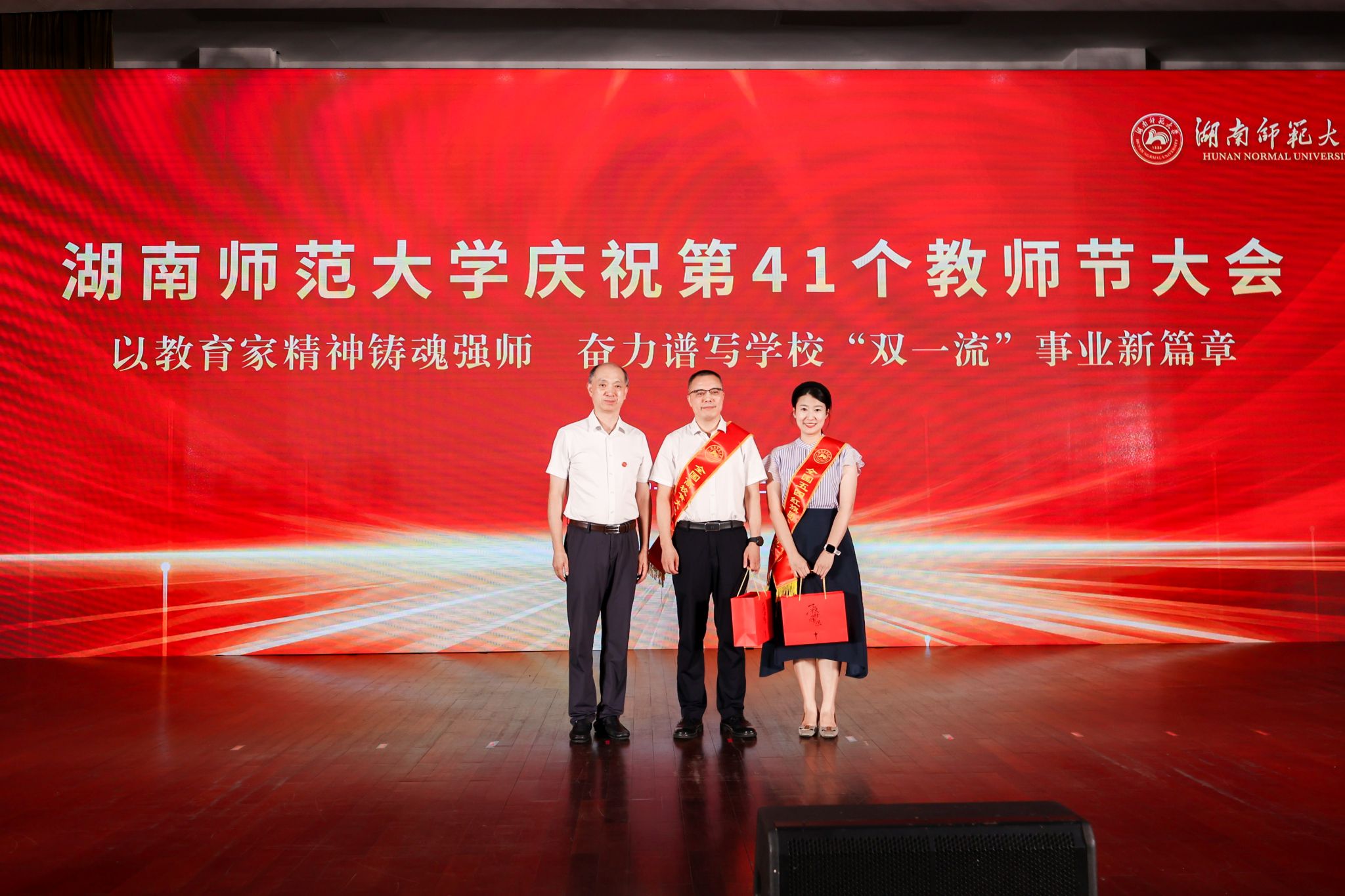(供稿 人事处 记者 马铁泉 李采薇)师道永续,华章日新。9月10日下午,我校举行庆祝第41个教师节大会。校长、中国工程院院士刘仲华等全体在家校领导出席会议,与全校教职工代表共庆节日。